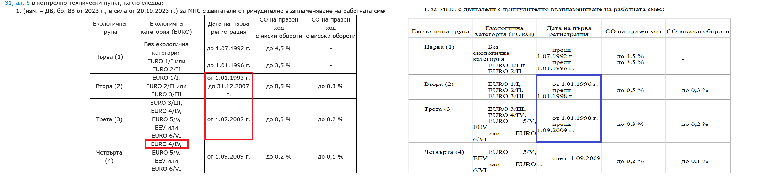 - Водеща е EURO категорията а не годината на първа регистрация (ясно е написано).