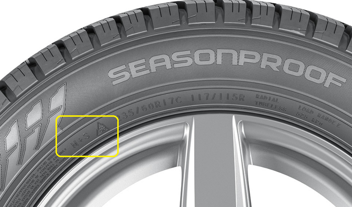 Освен това всички всесезонни гуми са маркирани със символа "три върха и снежинка".