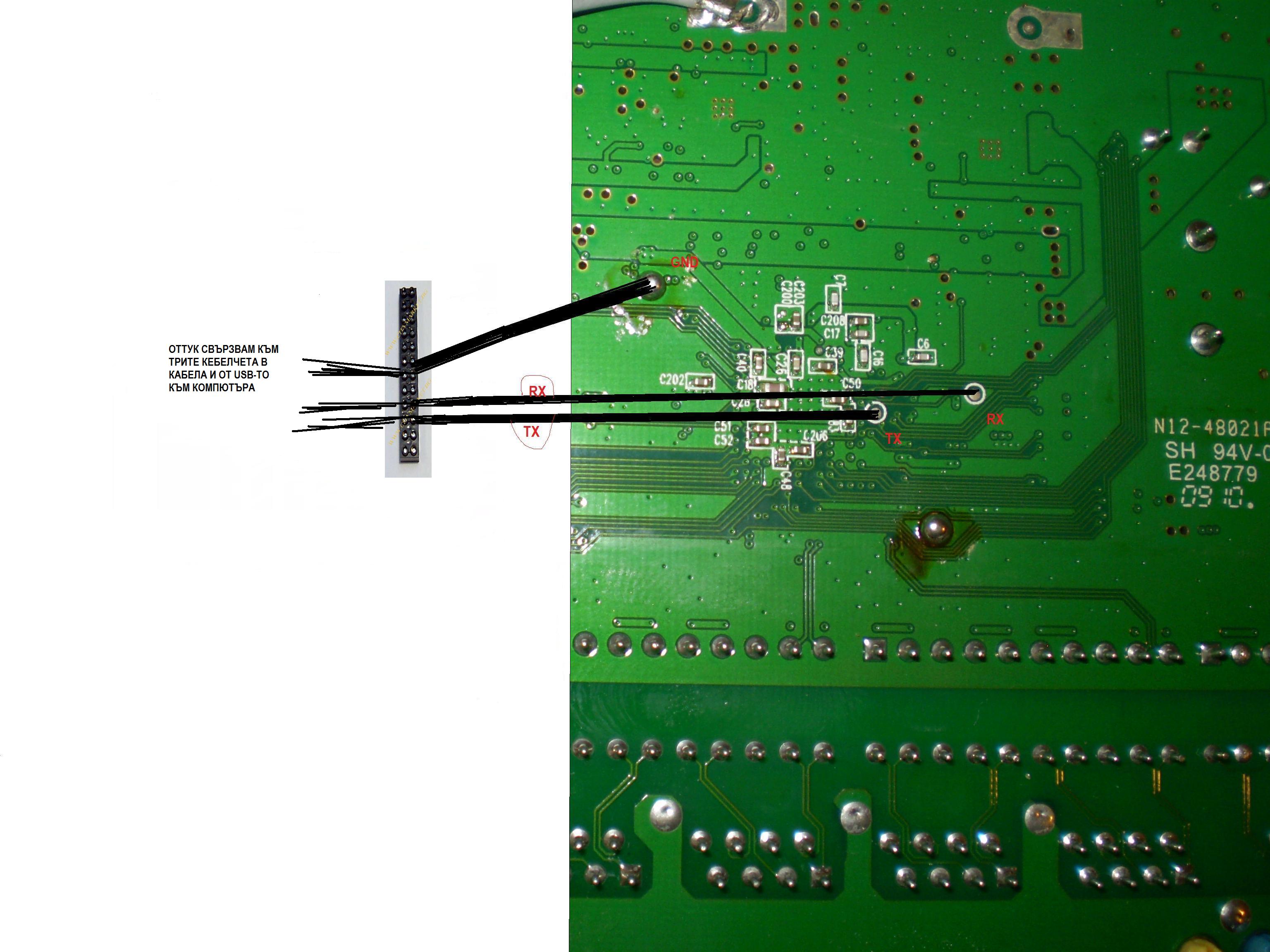 ОК, значи ще имам картина от U-BOOT с това USB. Видях, че от него има три букси. Като разбера коя е за TX RX GND да ги свържа като в процедурата от dd-wrt. Може ли на Тендата да запоя 3 кабела и да ползвам клема за да свържа с жичките от кабела ? Моля погледнете снимката.