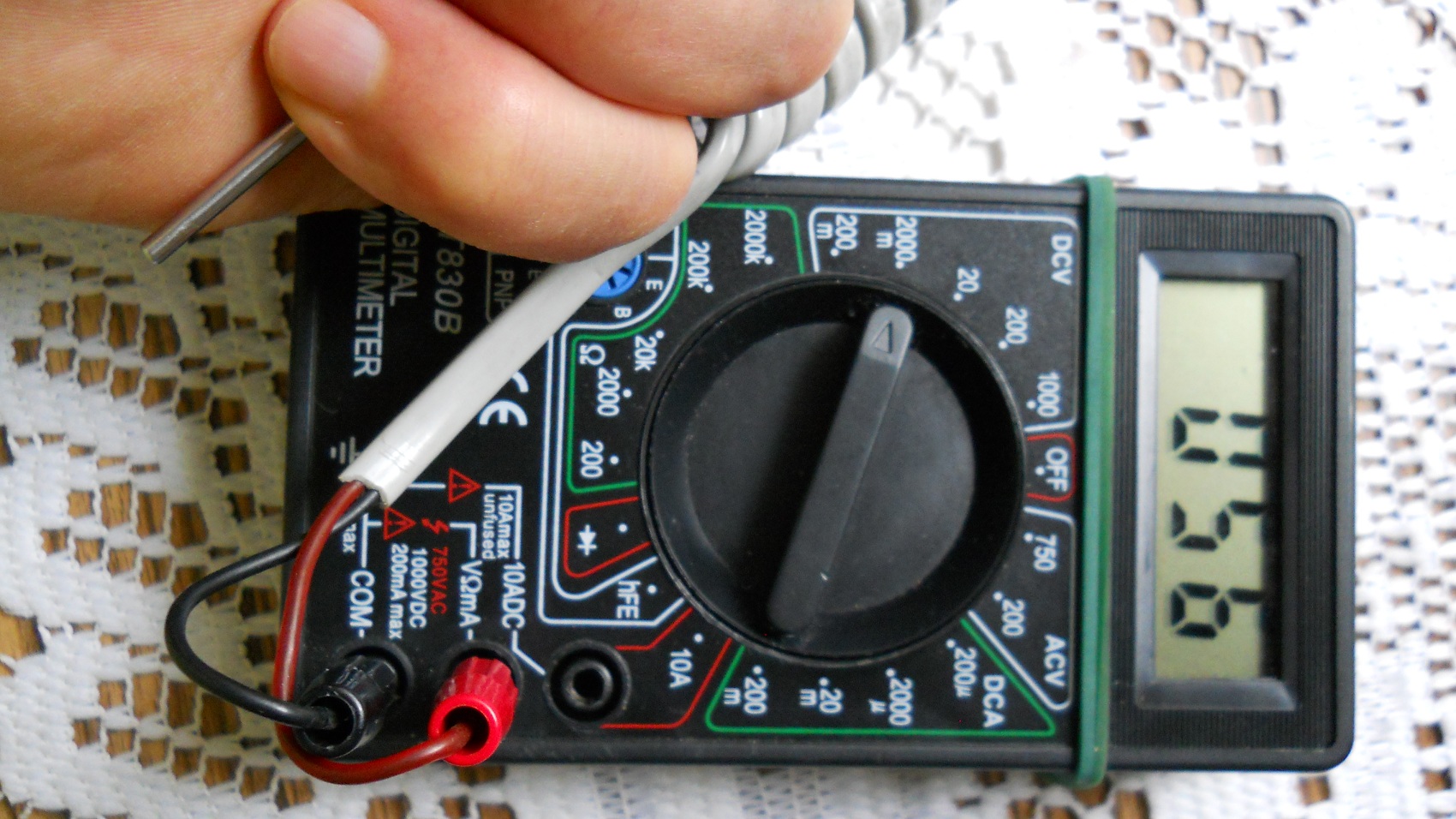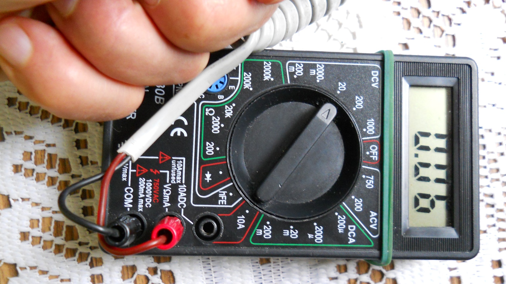 Благодаря,смених батериите на мултицета и сондата.Като стайна температура показва 50 градуса на 2000 мили волта. Ще му потърся стрелкови мултицет и ще го разграфя наново.Може да се наложи да се донастроя.Само да не го осеря.Аз го вземах от любопитство за две бири,но ми стана интересно и ще си поиграя с него.Изкам да си взема нещо съвсем елементарно,да си меря котлоните и фурните.