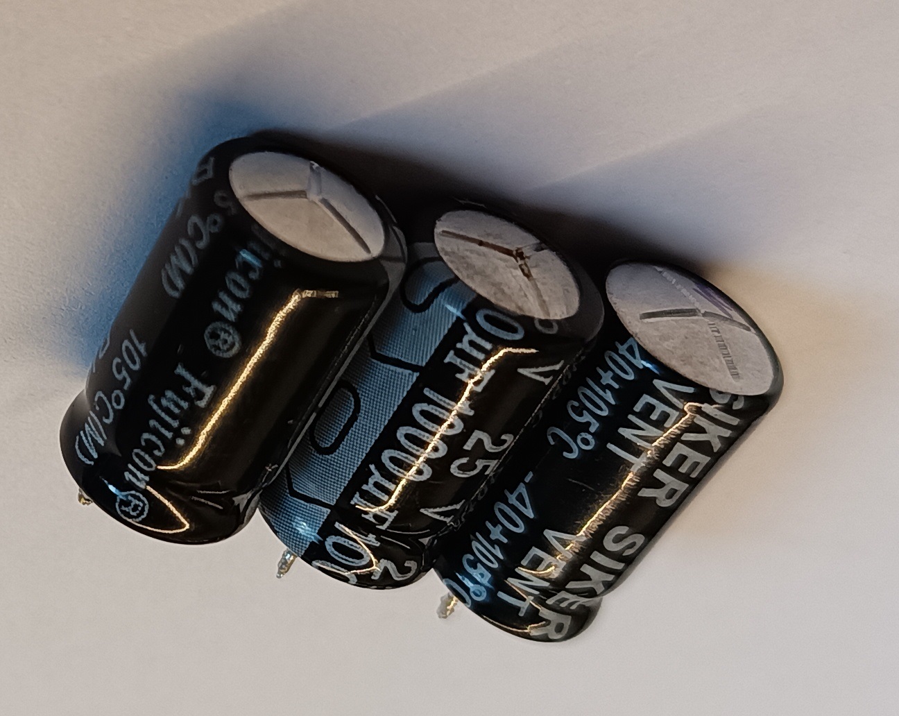 2 от тях сините са VDA 1000 мкф/35V и един жълт NXH 1000 мкф/25V.
