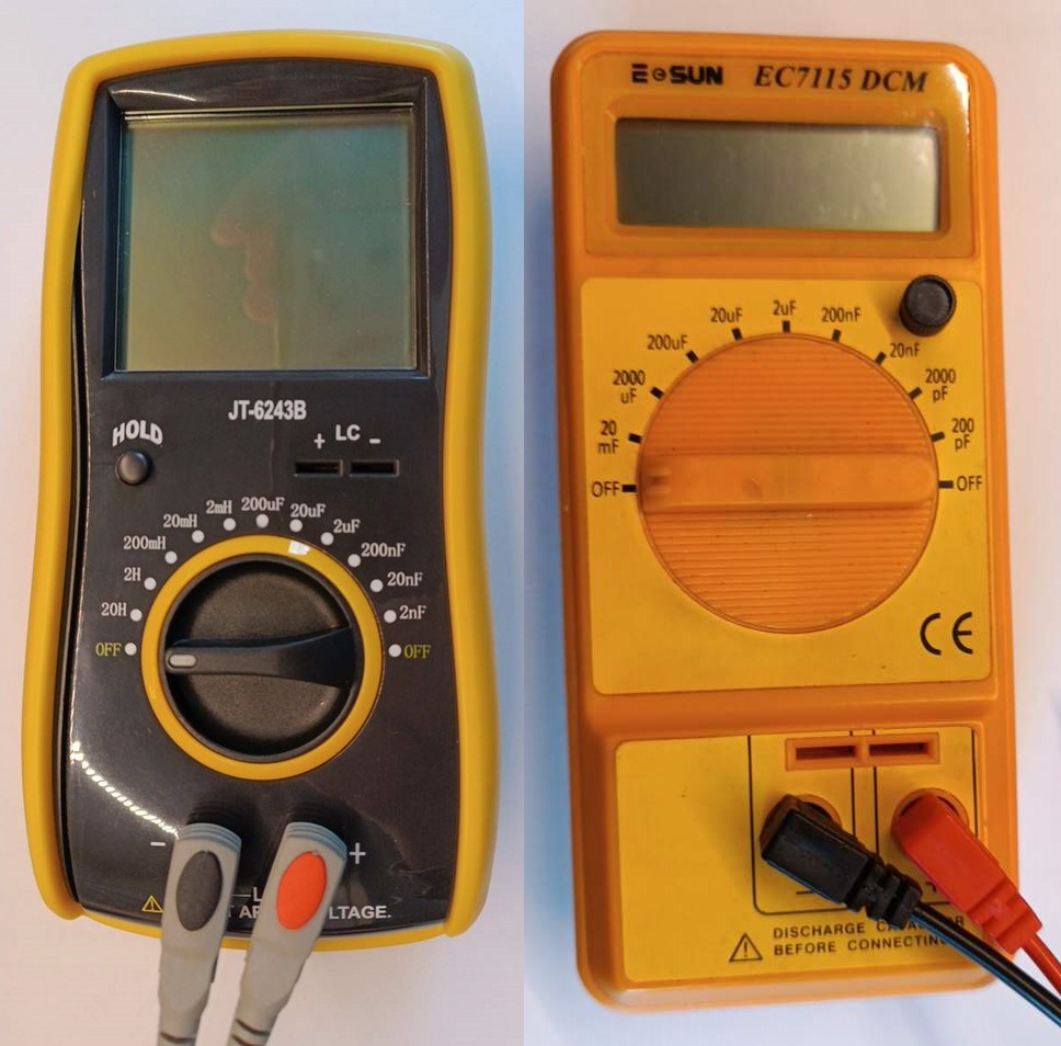 2 бр. KMG по към 700 мкф показани и от двата уреда, но с по-високи параметри при LCR по другите показатели спрямо новите кондензатори, които купих от Елимекс.