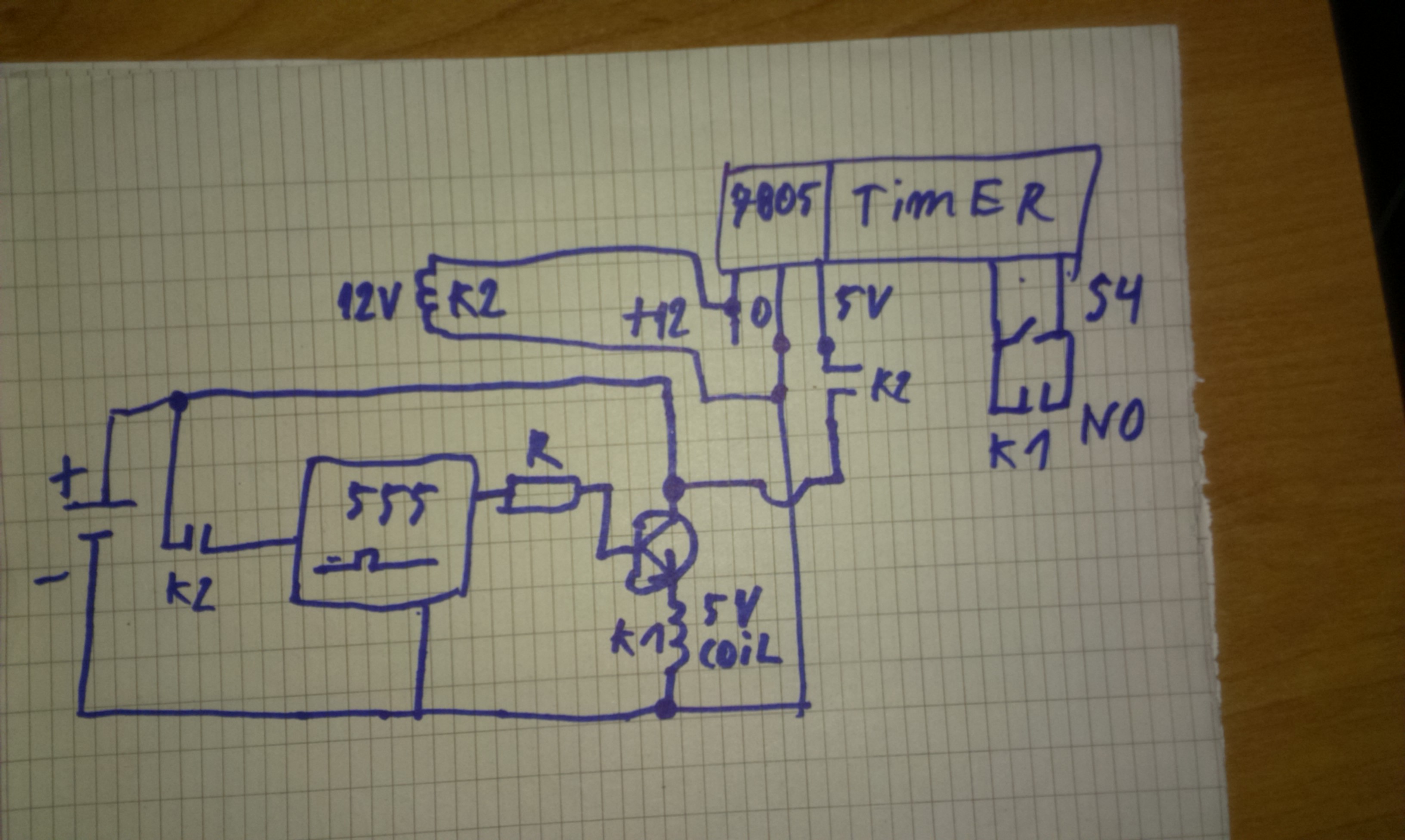 [-X Акумулатор 4,8 волта след стабилизатора. Това са 4 бр по 1,2 волта. Няма смисъл преди стабилизатора. Ще ти изяде батерията или акумулатора много бързо. Останалите работи за паузата, релето... си остават.