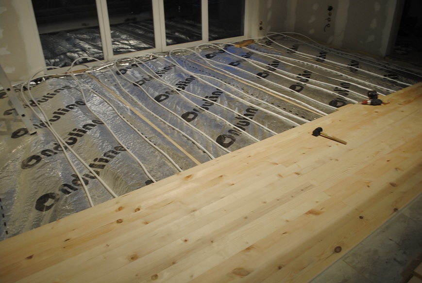 готова система за подово, подложката има улеи, в които се полага тръбата.