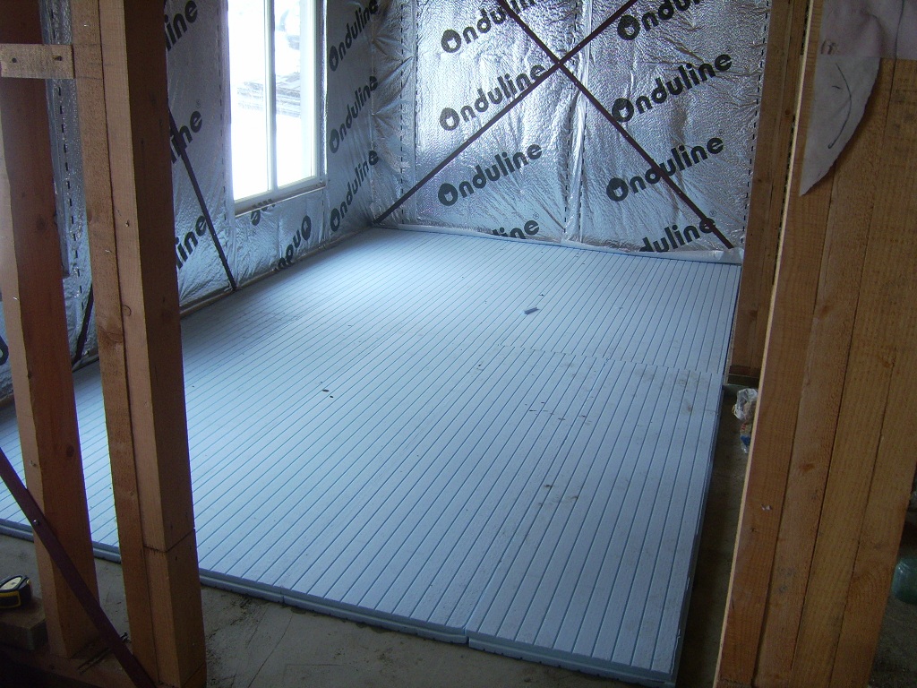 - Уплътнявам с пяна всички фуги между листовете изолация, където ми остават тесни изрезки ги лепя за съседните листа с пяната.