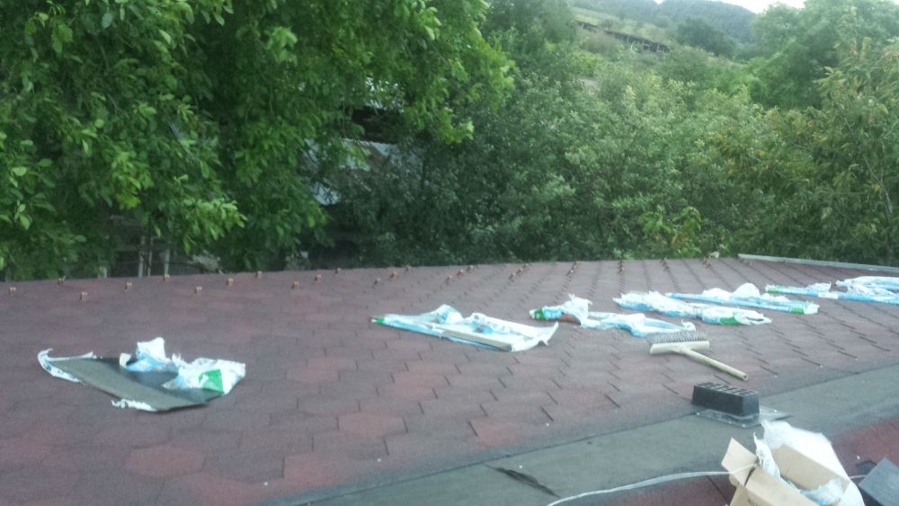 k88 написа:На мен ми е интересна обшивката на комина. Двойно залепващи керемиди едва ли има. Като си сложил този отдушник между две ребра, как се вентилират съседните, да не говорим за целия покрив. Как са монтирани междинните столици и какъв е наклона на покрива?Вадим Владимиров написа:Би ли ми показал как е направен комина? Какви керемиди си ползвал? И каква е ролята на отдушниците?Комина е направен от керамични коминни тела 32х32 см. Битумните керамиди са двойно залепващи на Tegola Candese след като са пуснати и ребрата ОSB или Кофражни бандове се заковават кам гредите после се постилва мушама (двойномембранда парапрупосклива май беше) после се редят керамидите има клипове в youtube а ролята на отдушниците е да не прегрява самоят покрив, лятото топлият ваздух се изпарява от там
