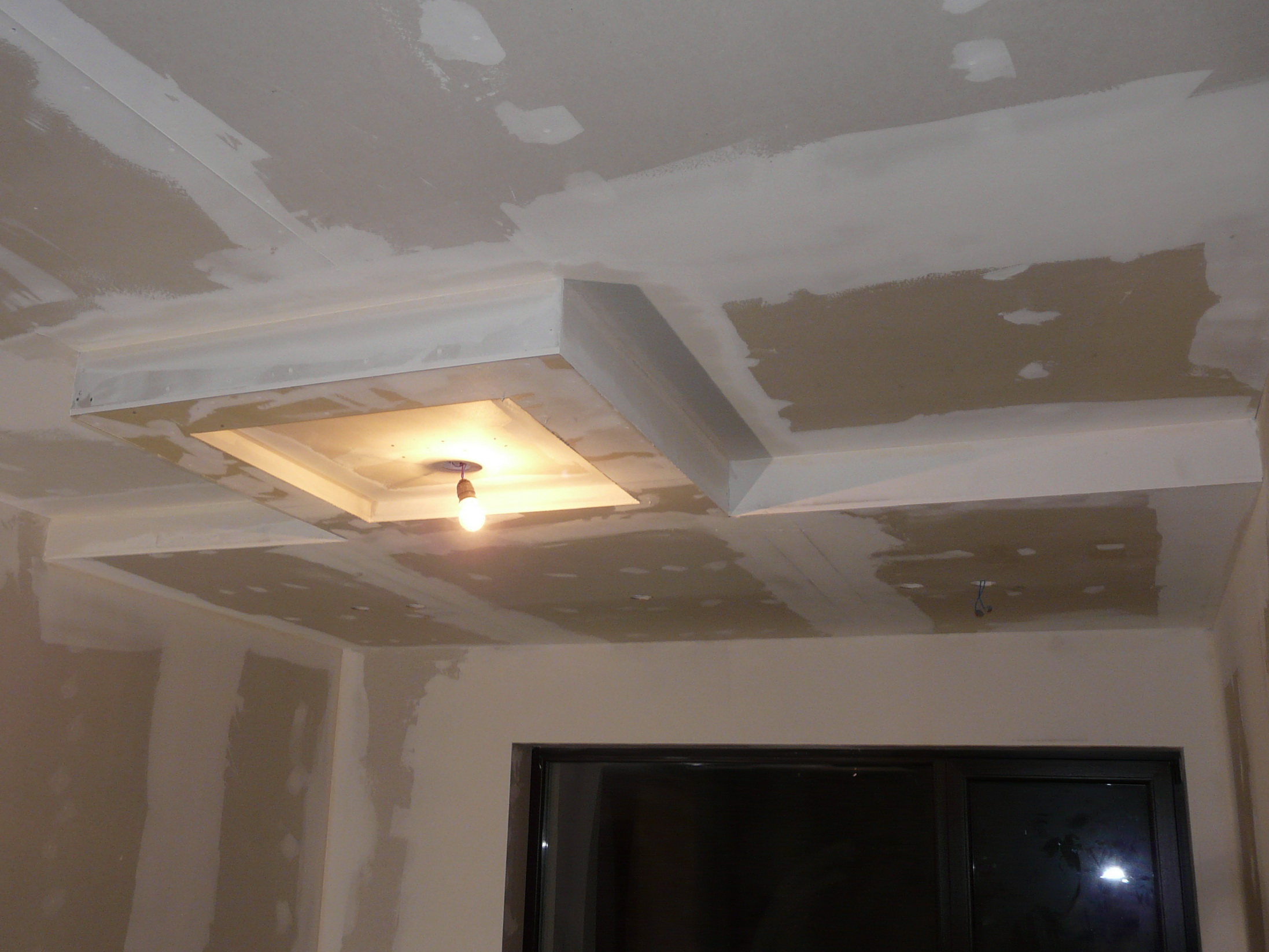 Пресни пресни. Току що ги снимах. Може да ползваш идеята. Разбира се в твоя случай и четвъртия крй ще изглежда като другите три. Това разбира се оскъпява малко проекта. В средата на тази фигура също ще има полилей, той обаче ще е квадратен . Имам и снимки на тавана с фигурата и монтиран полилей заедно с луничките на другия край но те са в къщи и мога да ги изпратя когато се прибера, ако проявяваш интерес