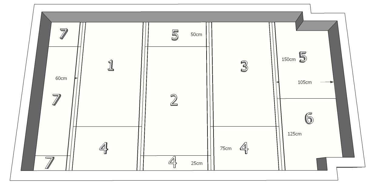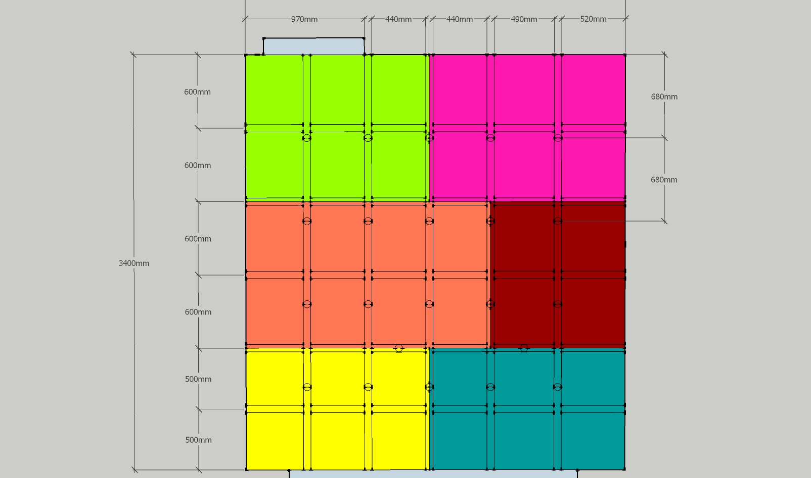 2. Според вас, добре ли са разпределени профилите показани на снимка "Проек за спалня 3.4м/3.1м" ? С кръгче и черта са означени местата на поставяне на директните окачвачи(с два анкер пирона), като CD профилите(5-те броя) на дългата страна(3,4м) са цели от край до край. Въпроса е напречните, по кой от методите по-горе да ги напрвя и дали ми стигат точките на окачване или трябва допълнително. С различни цветове съм показал различните листове гипс-картон, така че да се застъпват фугите, доколкото може.