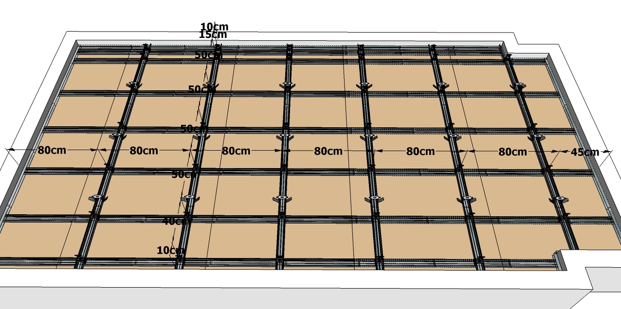 На последната снимка е коридора(1.5м/3м) като закрепях профилите по моя начин и като цяло конструкцията е доста по-стабилна, но може би заради по-малките размери.
