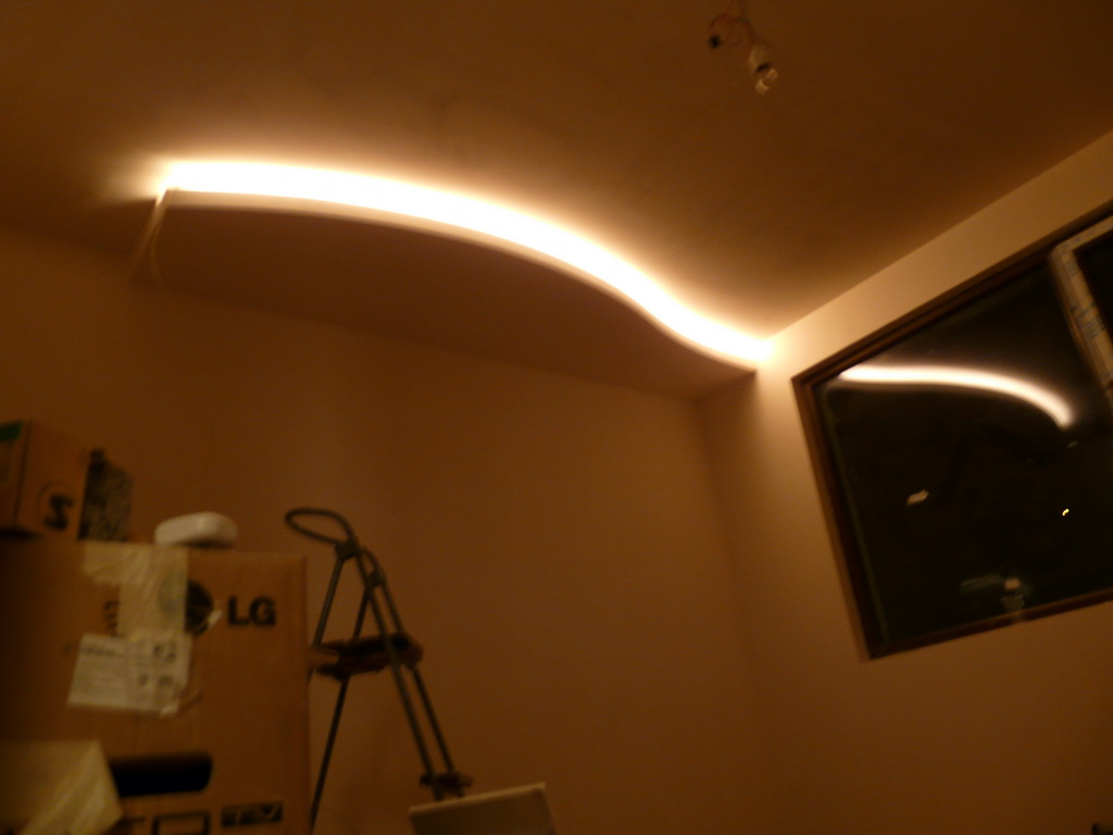 мисълта ми е че искам отпред завършека където е извитото да е с борд и скрито осветление и незнам там как да си подредя профилите