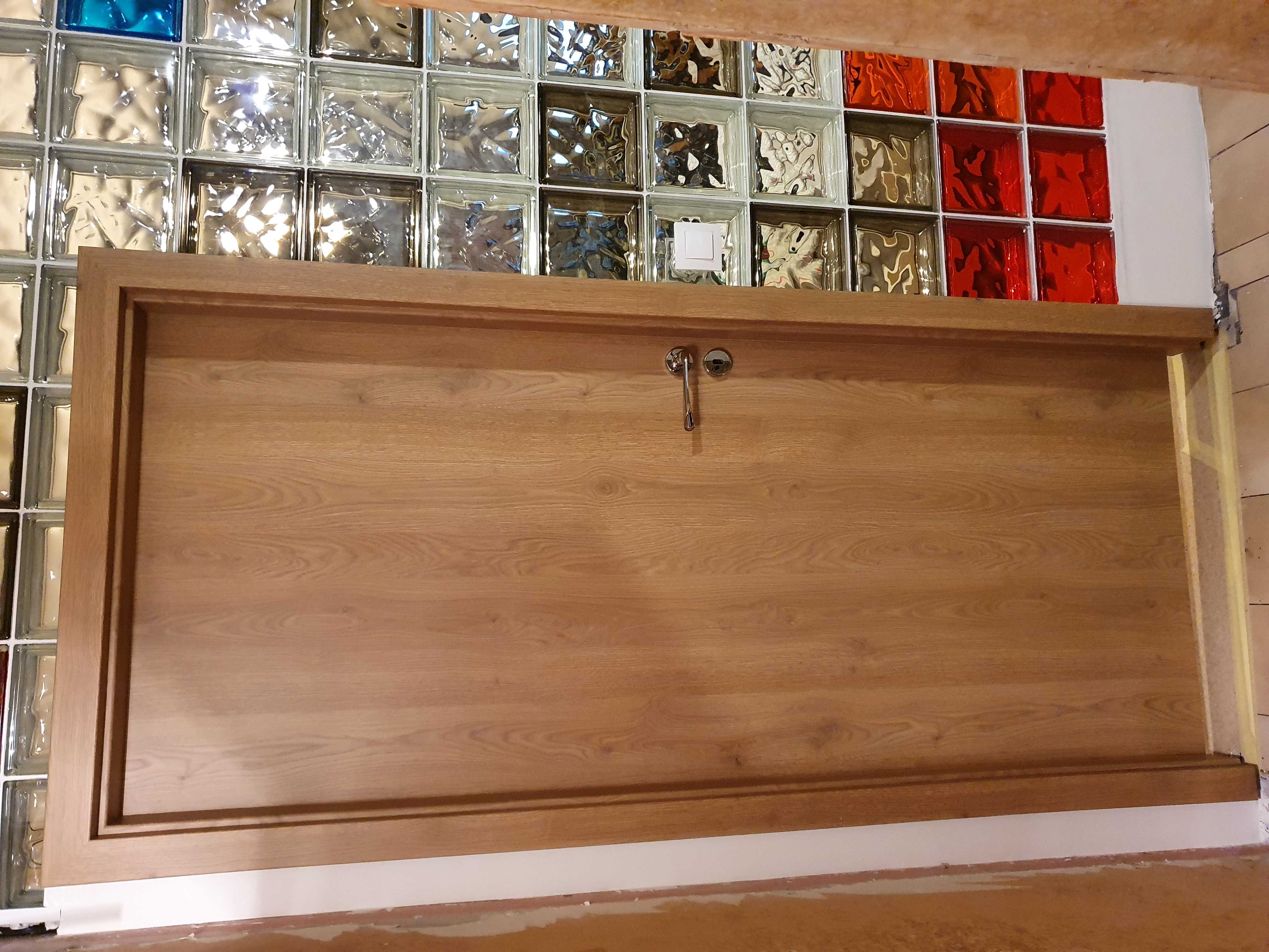 Фугирането се оказа доста тегава работа и заедно с 1 колега ни отне около 6 часа да ги направим. Има забележки ,но се оказа голяма играчка :) :) . Един пълни ,а другия започва да ги оформя с гъба ,като при оформянето трябва реално да се отнеме 2-3мм ,за да остане фугата на вътрешния ръб на R-а на тухлата, за да изглежда добре... 100% технически не е изпълнено от толкова търкане и влажни гъби ,но фугите станаха гладки, леко лъскави и добре.. Фугирането на равно с тухлите изглежда ужасно ,защото 4-те милиметра реална фуга става видима около 10мм.. Това доста бърка в очите при цветните тухли.. Точно 5кг фуга беше необходима. :) Най-хубавото е ,че кривината не стана по-зле !! :supz: :supz: :supz: Финално боядисах профилите вече на място с още 1 ръка бяла боя. Монтирах касата на вратата (сам се изгърбих с тази 9,5см каса и 3см от пода..) Доста добре дойде на нивелира ,а плътното крило (от перфорирано ПДЧ) се усеща уникално при движение на вратата ,заради голямото си тегло. Сега остана само да мина всички фуги на тухлите в рамката с полиуретанов уплътнител (ест. този на Sika (уникален), който знам от Chapara!!). Следващата стъпка тези седмици ще е вече ремонта на кухнята и т.н....