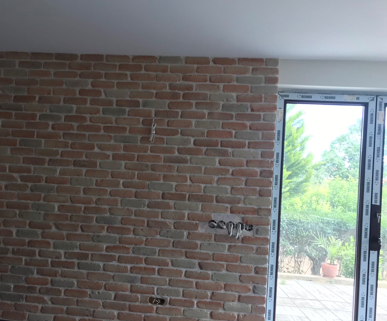 Направихме си тази декоративна стена в хола, но се сблъсках с това как да завърша по възможно най-естетичният вид 5-цата ключове и контактите които са на нея. Това въобще не го помислих, че би било такова предизвикателство. Умишлено не съм довършил стената, но ако за правилното решение това е необходимо няма да е проблем, тухли бол! :)