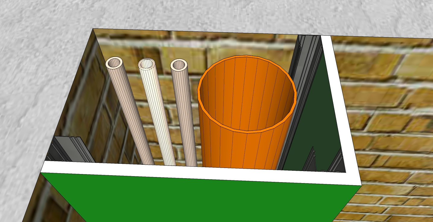 Здравейте, колеги! Искам да си направя куфар около тръби , както и да "облека" структура за вграждане. Търсих инфо за това как става, но не намерих тънките моменти. Ето как искам да стане и какво ми е съществуващото положение. За куфара на тръбите ще стане ли само с UD профили? Освен по стените, тавана и тази която ще е по външния ъгъл, необходимо ли е да "спъвам" допълнително конструкцията? Мислех да изтегля структурата на линията на куфара, но ще загубя място. Мога ли да използвам структурата и за нея да захващам UD профили? Като 3д проект не е проблем да реализирам цялото нещо, въпроса е от конструктивна гледна точка дали ще е здраво? Някъде трябва ли да слагам CD профил? По скоро вертикалните UD профили през какво разстояние трябва да се "Спъват"? Куфара е с размери 35/35, а структурата ще е около 28/ 75, защото до нея ще слагам смесител за биде. Височината е 2,65. Смятам да е с една ниша и една луничка отгоре и стъклени рафтове. Куфара на структурата ще е симетричен и няма да е точно като този на 3д проекта. Сега като го гледам май най - добре ще стане всичко да е в една равнина. :?