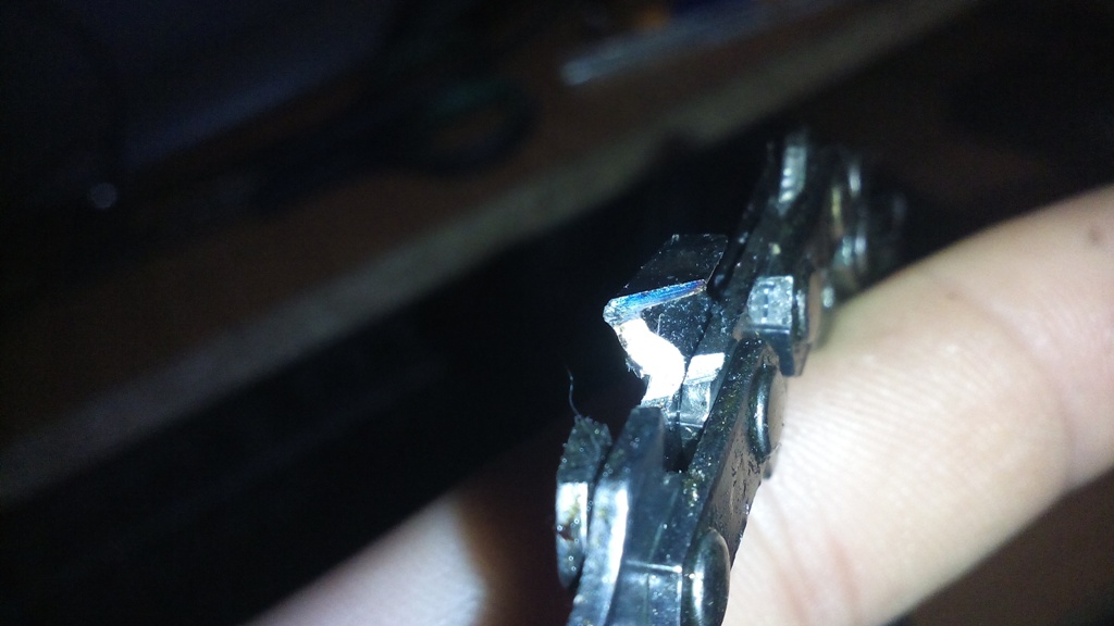 Здравейте колеги ! Искам да отправя предупреждение към всички от вас , които понякога носят веригите си за заточване . На кратко заточвах няколко пъти моята верига , но реших да я дам в Мосю Бриколаж да ми оправят ъгъла и да я заточат до тук добре казаха ми че до една седмица ще ми се обадят да я взема . След 4 дни ми звъннаха , взех я и след като се прибрах видях че е посинена цялата :axe: няма незасегнат зъб...... тези дни ще порежа и ще ви кажа дали ще се хвърля [-( ето няколко снимки дано да добиете представа от тях