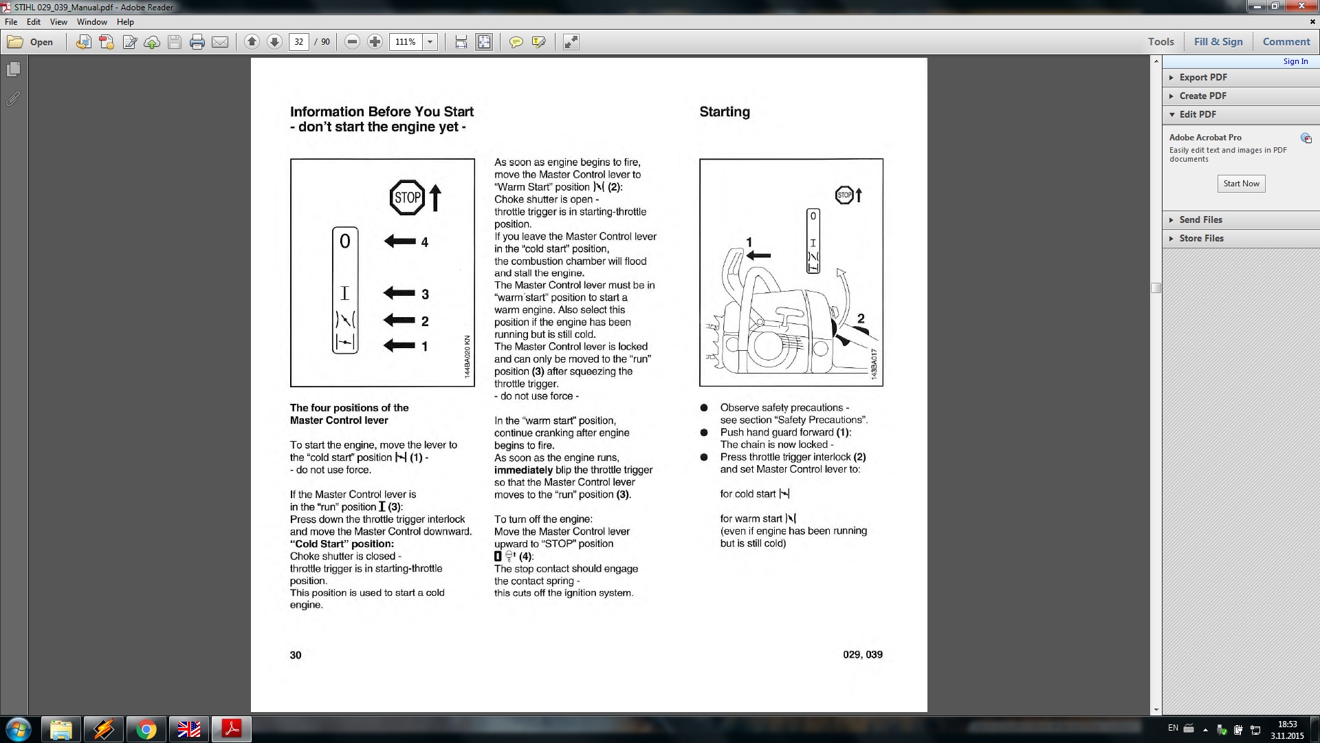 Ами така съм свикнал или така свикнах машината,де да знам.Но така си паля,първоначално не давам контакт за да вдигна гориво в карбуратора и да не се получават ненужни детонации.А на пролет след зазимяването дърпането е поне 7-8 пъти,понеже няма помпа.