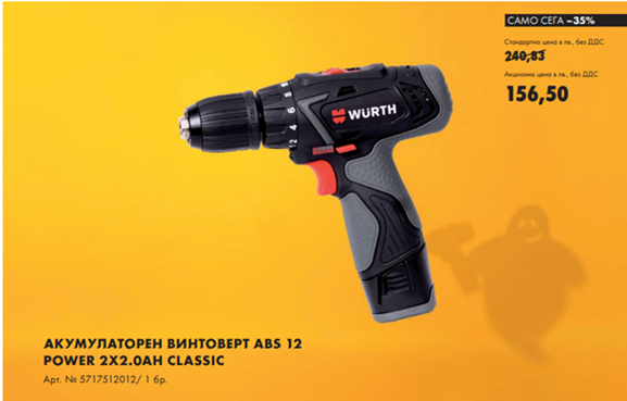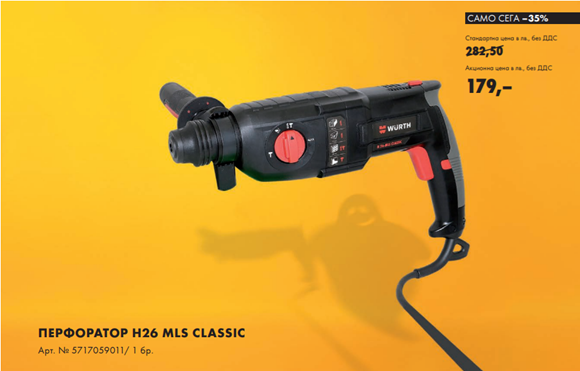 Това ли гледаш? https://www.wuerth.bg/files/promotions/ ... offers.pdf