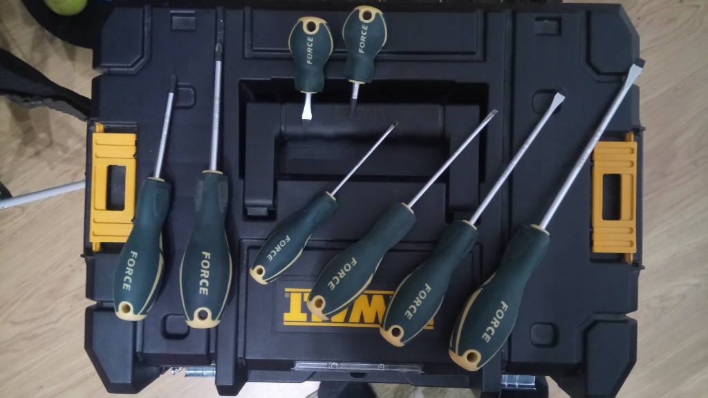И малко отвертки да покажа: Форс са идеални за мизерна работа, както и ги ползвам. Верата е с лазерно набраздения връх който е доста прехвалена работа, по добре без него. А за усаг, няма какво да кажа, усеща се в ръката като вечен инструмент.