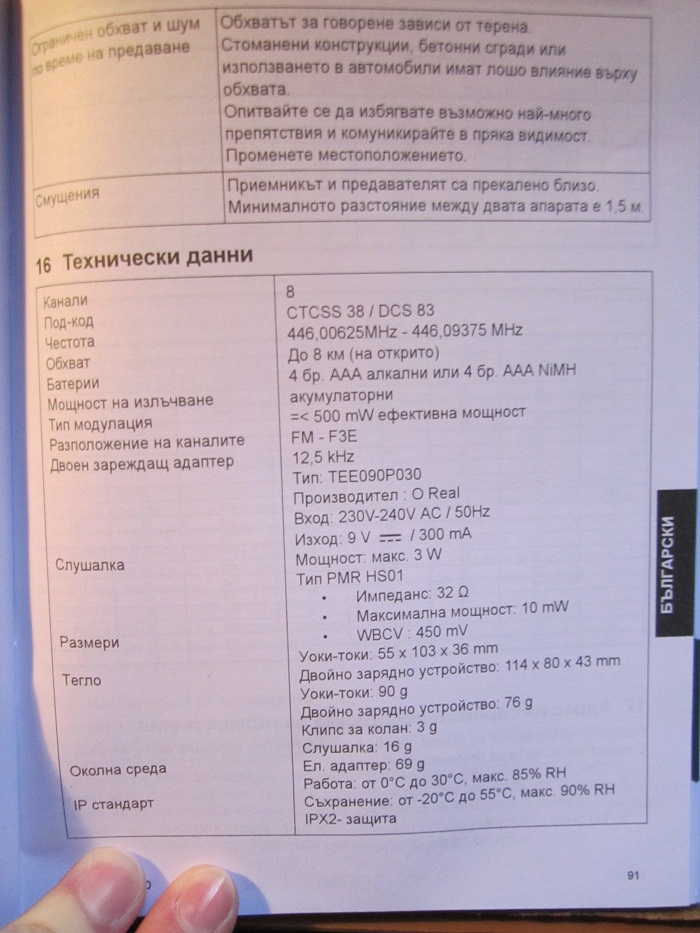 Опааа аз бях забравил че в Европа са забранени уоки токитата със американския стандарт а са разрешени PMR стандарта а в упътването не виждам такъв стандарт,въпреки че по щатско съм мяркал такава марка токита