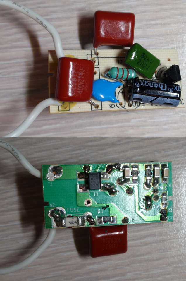 Започнах проверка от С2, защото предния път причината бе в него, но се оказа изправен. Обаче С1 показа 82 нанофарада вместо 220. Намаления капацитет е причина за незареждане и слабо светене, когато фенерчето е в-у зарядното. След подмяна започна да се зарежда Li-ion-та батерия.