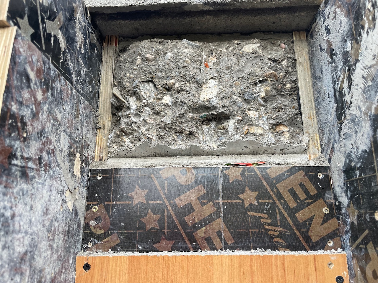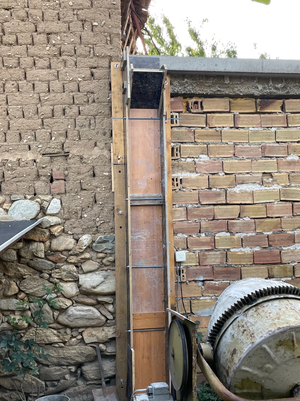 Вчера налях едната, днес другата, че дните къси. Отворът за наливане го бях оставил на 30 см под крайната височина, за да е удобно за пълнене. Като напълних дотам, го вдигнах нагоре, за да къртя по-малко. Остава да се доокърти до нужното ниво