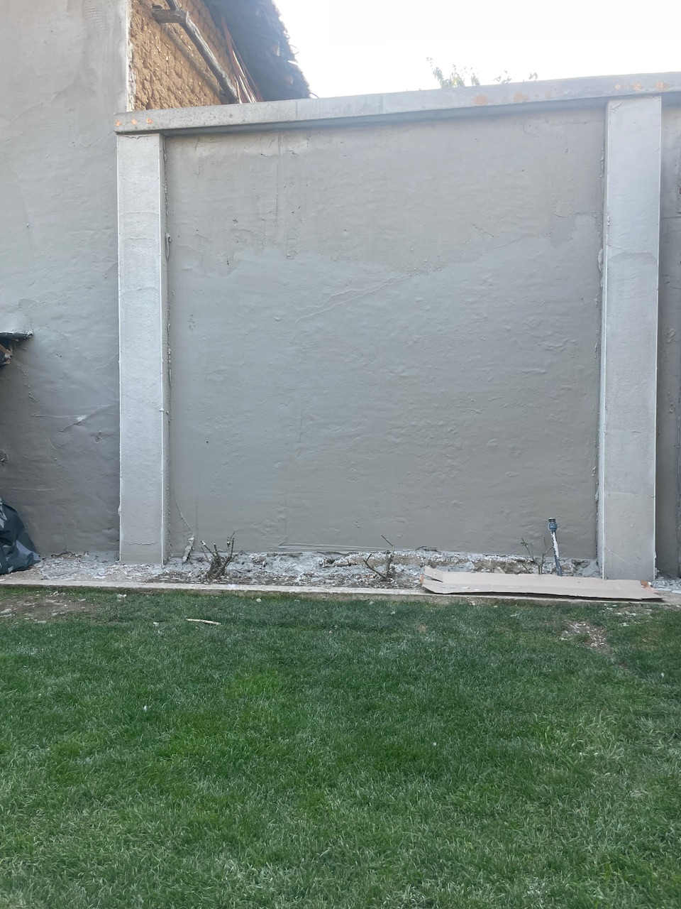 След грубата мазилка. Предполагам, че са изкривили лайсната. Дано подлежи на коригиране. Изненадах се, че са “облекли” колоните, че малко по-различни планове имах за тях, но нищо.