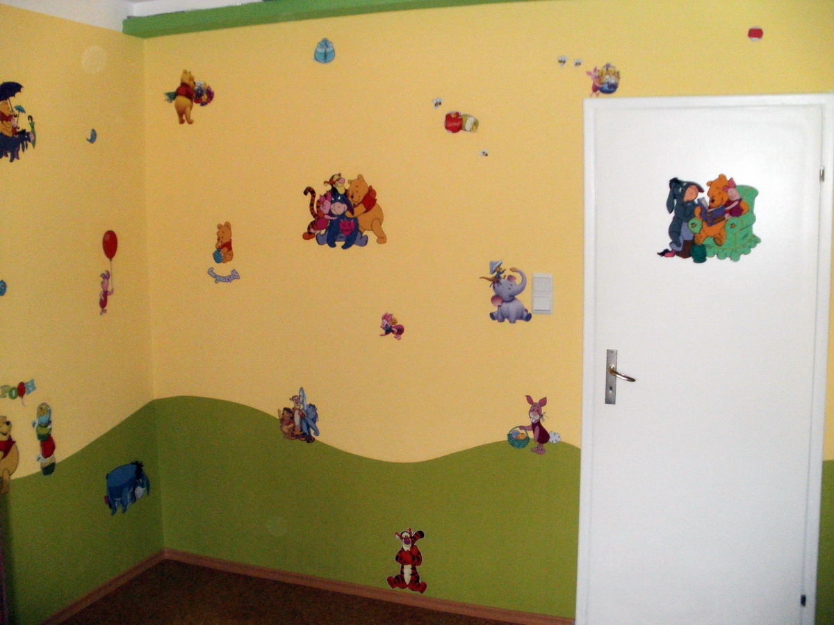 Жълтото е латекс, зеленото и фигурките са тапет.