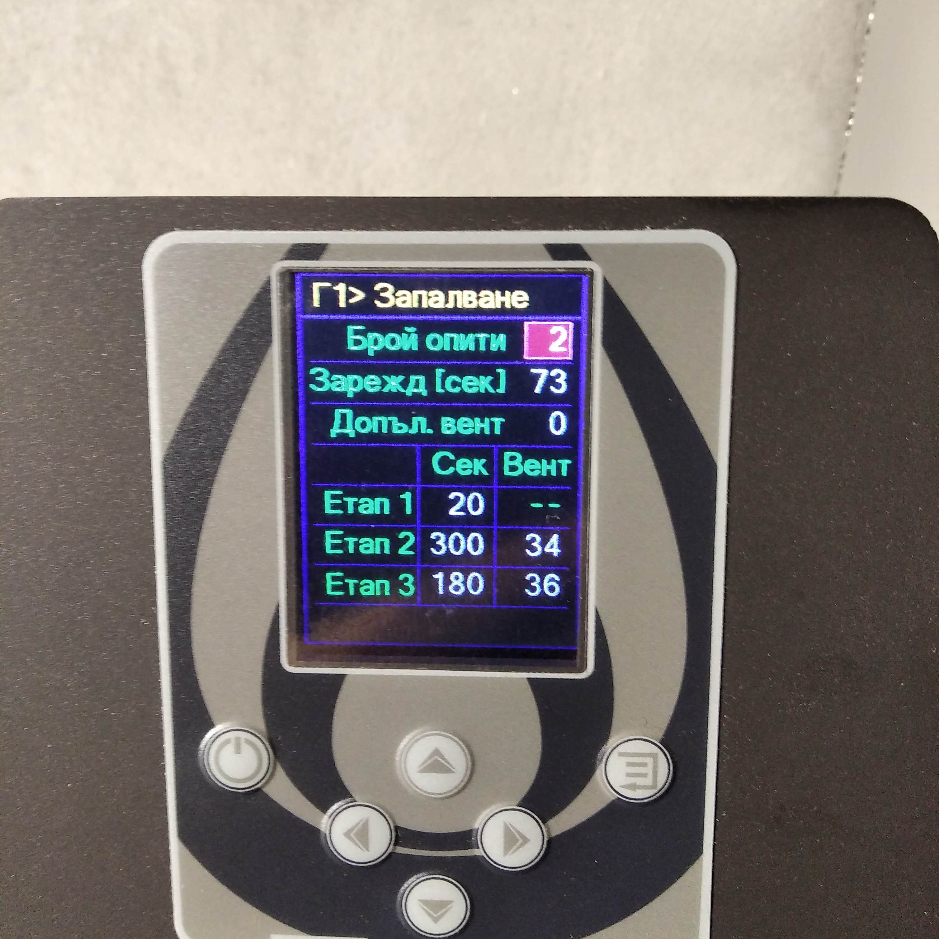 вт ное 26, 2019 8:47 pmtsvetanm написа:Май май версията на софтуера ти е бъгава. Моята е 50/24. По спомен и моите настройки за запалване са 20/300/180, както е и в инструкцията за експлатация ((новата версия!!!) Мисля, че разказите по-горе са по-скоро насока, не толкова споделяне. Доста професионално описано - браво на колегата. Хубаво е да има, кой да ни насочва.Антон С. написа: Колега, наблюдавал ли си я скоро, как протича процеса на запалване? Аз бих си сипал едно червено винце и седнал пред нея, да я видя, какво точно прави. Тогава вероятно ще си оговориш сам и ще почерпиш опит от съветите на колегите по-горе.Колега, наблюдавах как протича, но за винце не се сетихОт това, което видях, реших, че вероятно трябва да намаля разпознаването на огън на 5 градуса. И да увелича времето на запалване. Сега виждам, че при колегата времената са 20/300/180 сек., а при мен са 20/180/90 сек. Прибягнах до консултация във форума, понеже не съм специалист по пелетни камини (и не успях да се свържа с инсталатора).