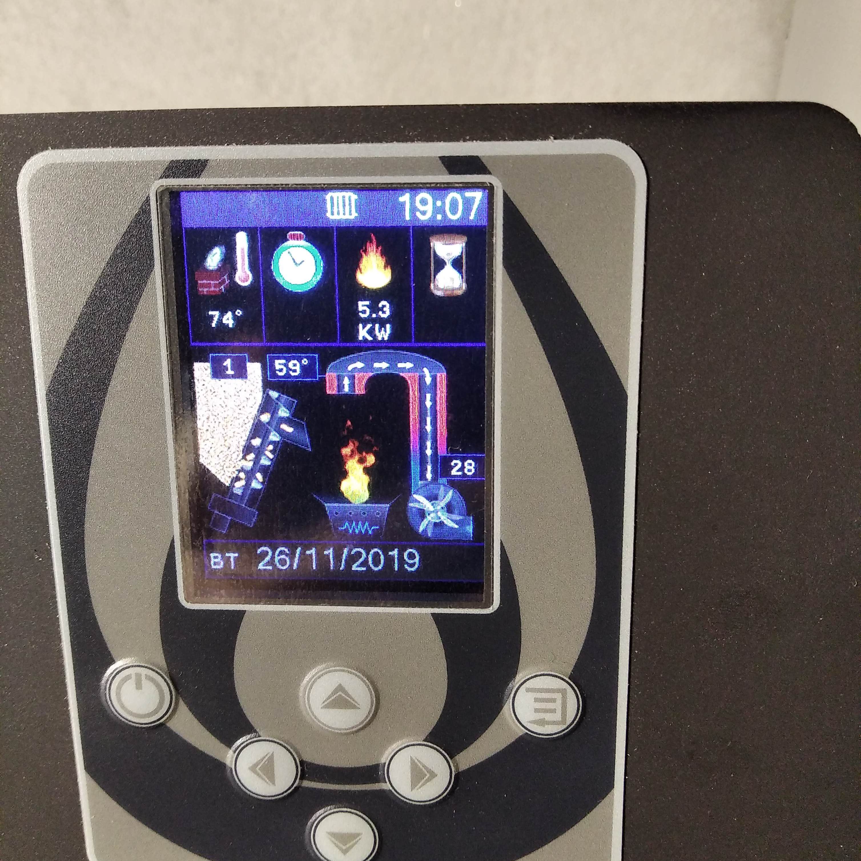 Не ми се е налагало да вдигам градусите на водата за сега, гори основно на Р1, така че затова са ниски градусите на димните. Само докато вдигне градусите на водата работи на Р3. Но и тогава не вдига повече от 85. Веднъж качи на 93 градуса - на другия ден изчистих горната ревизия (беше пъъъъълно) и температурата на димните пак си слезе надолу.