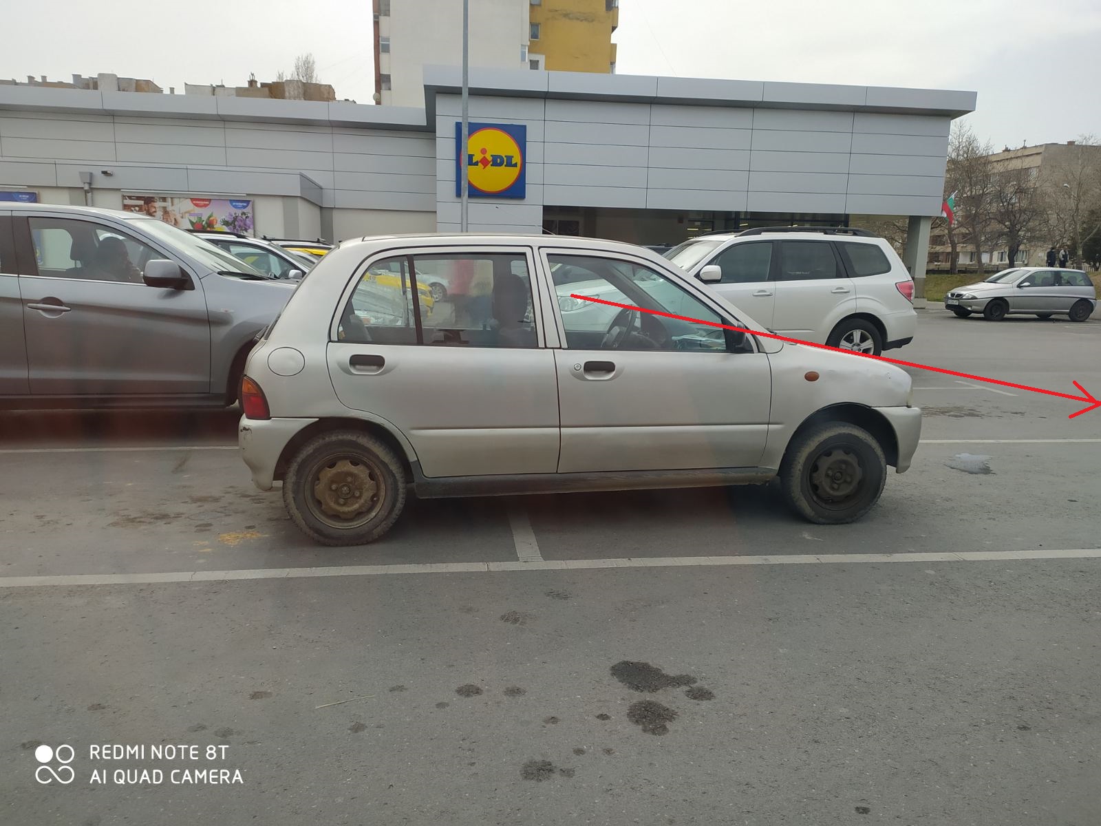 реши да даде на заден и добре че човека с джипката излезе с бързи реакции та не се стигна до сблъсък ,а дамата си паркира по този начин и слезе и отиде на 5 метра да си вземе кебапчета,а колата отдругата страна е доста очукана.....ама явно дамата толкова си може