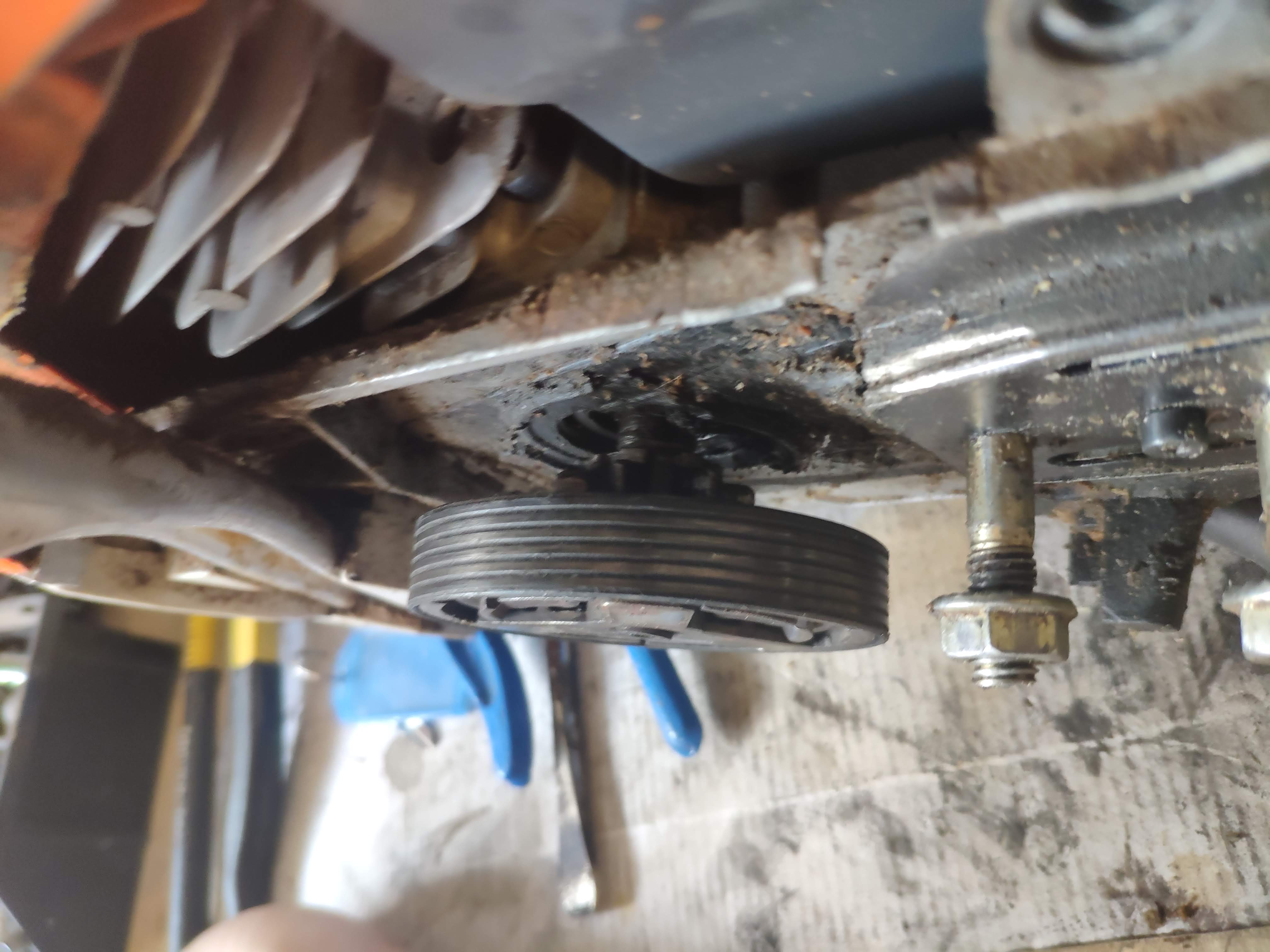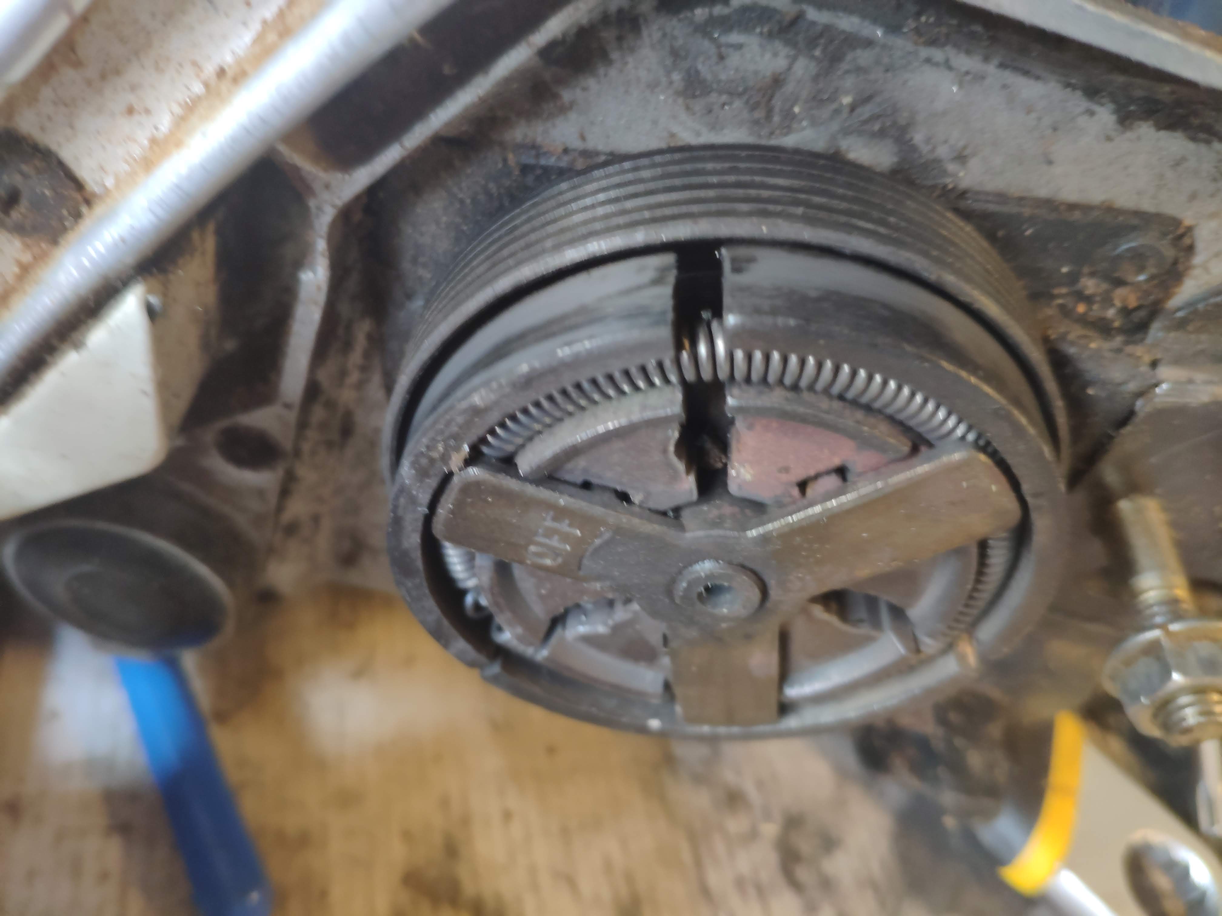 Имам една китайска резачка от доста години, която съм ползвал не повече от 4 пъти. Бях я дал на познат и когато ми я върна се оказа със стопен спирачен капак. Поръчах нов, но като тръгнах да го слагам, видях че водещото колело "играе" аксиално около съединителя. Струва ми се, че би трябвало да има зегерка или някаква пружина зад водещото колело ?