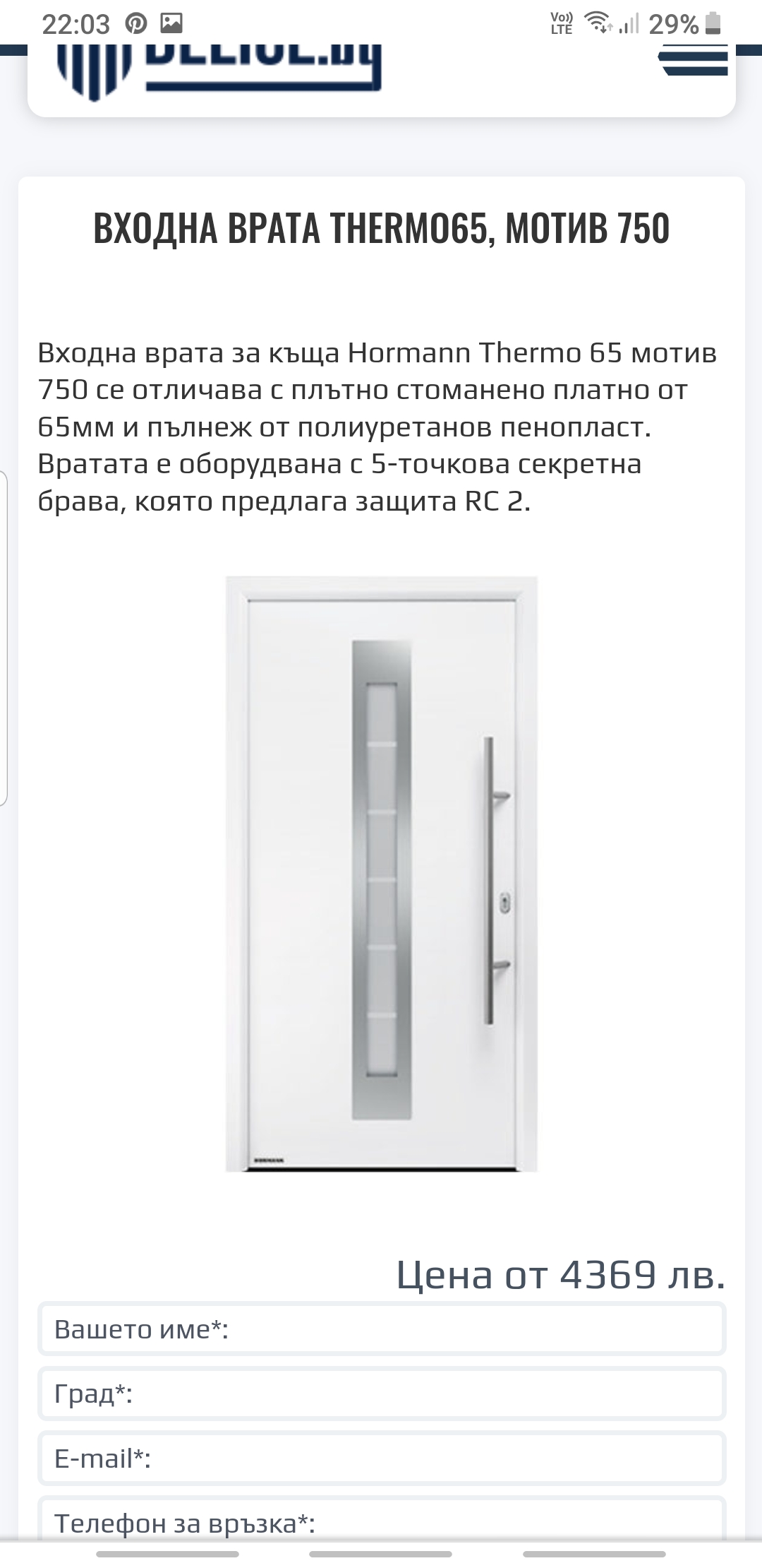 Мислих да не задълбавам, ама ме зачопли, каква точно врата поиска за оферта от хьорман ? Моята е Исопро Мотив 700 (термо 65 демек)