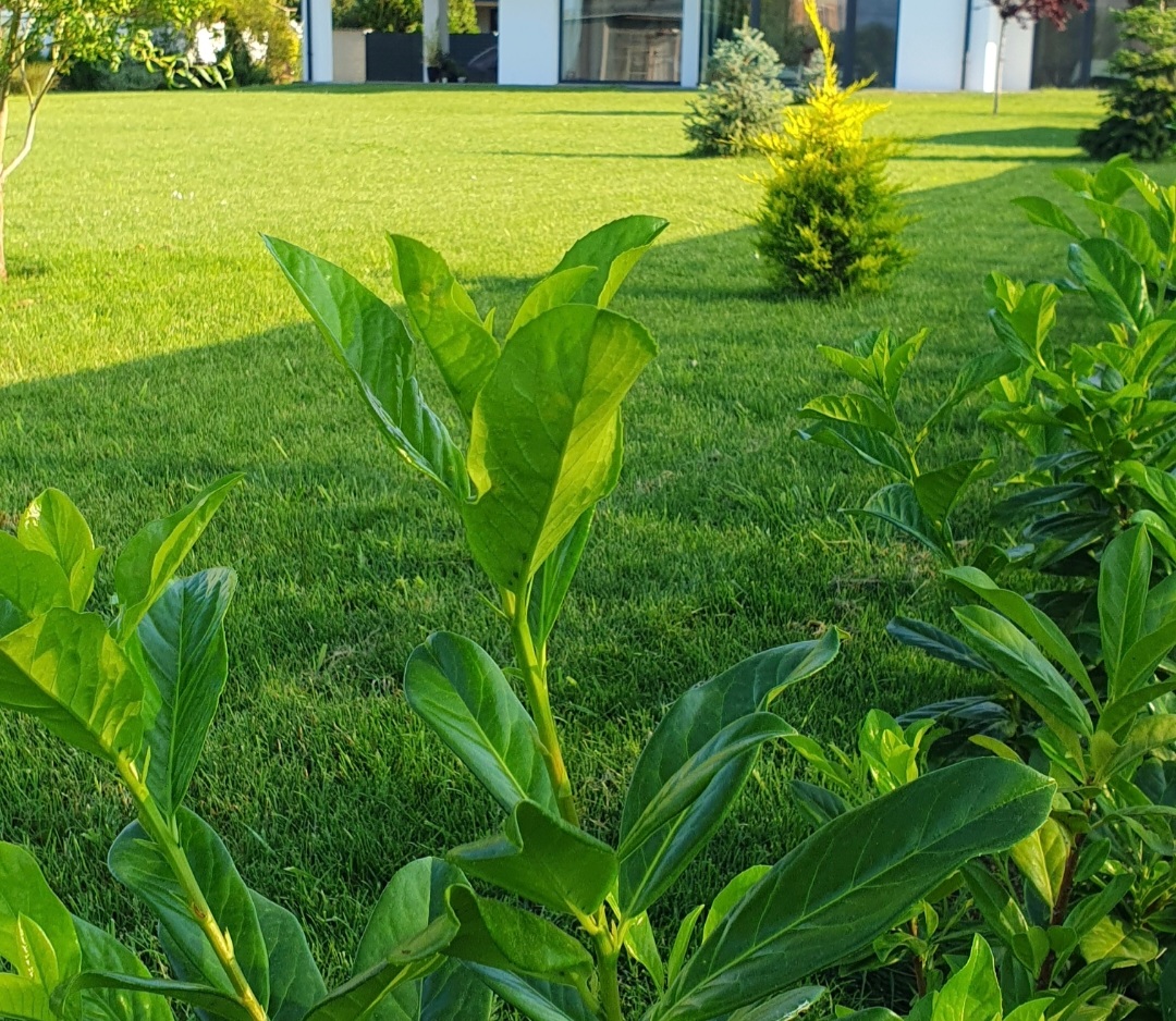 Такава площ не мога да си позволя да кося с косачка с кош .Така ми отнема около час ,час и малко ,защото малко трудно взимам завоите около растителността ,лепнала съм и едно тиксо на дръжката ,за да не я стискам цял час