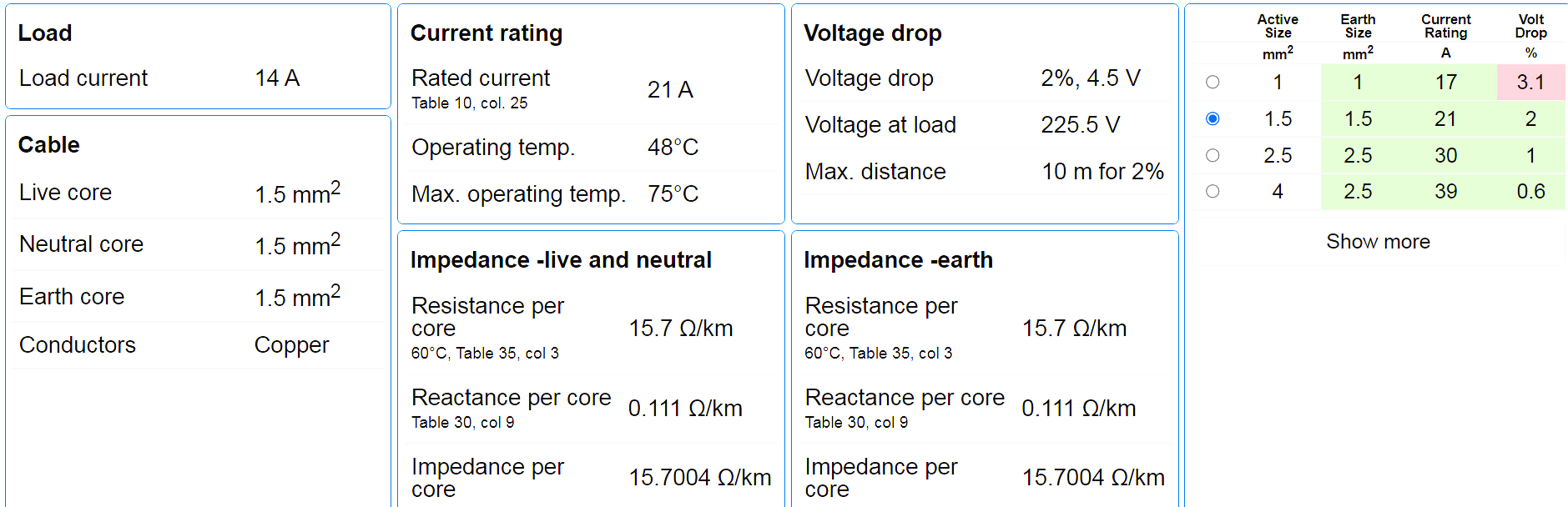 Явно изчисления за кабел с по-малко сечение от това на което сте свикнал ви притесняват, затова ще ви дам обратен пример.