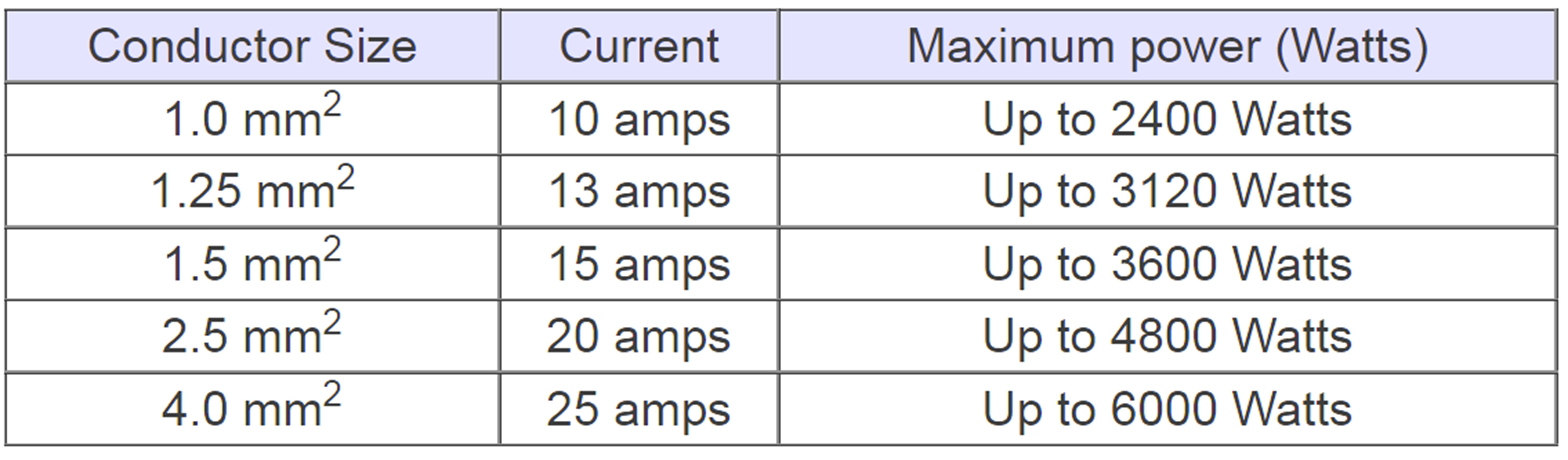1.5мм2 не слиза под 13А за маx. load, което е 3кW