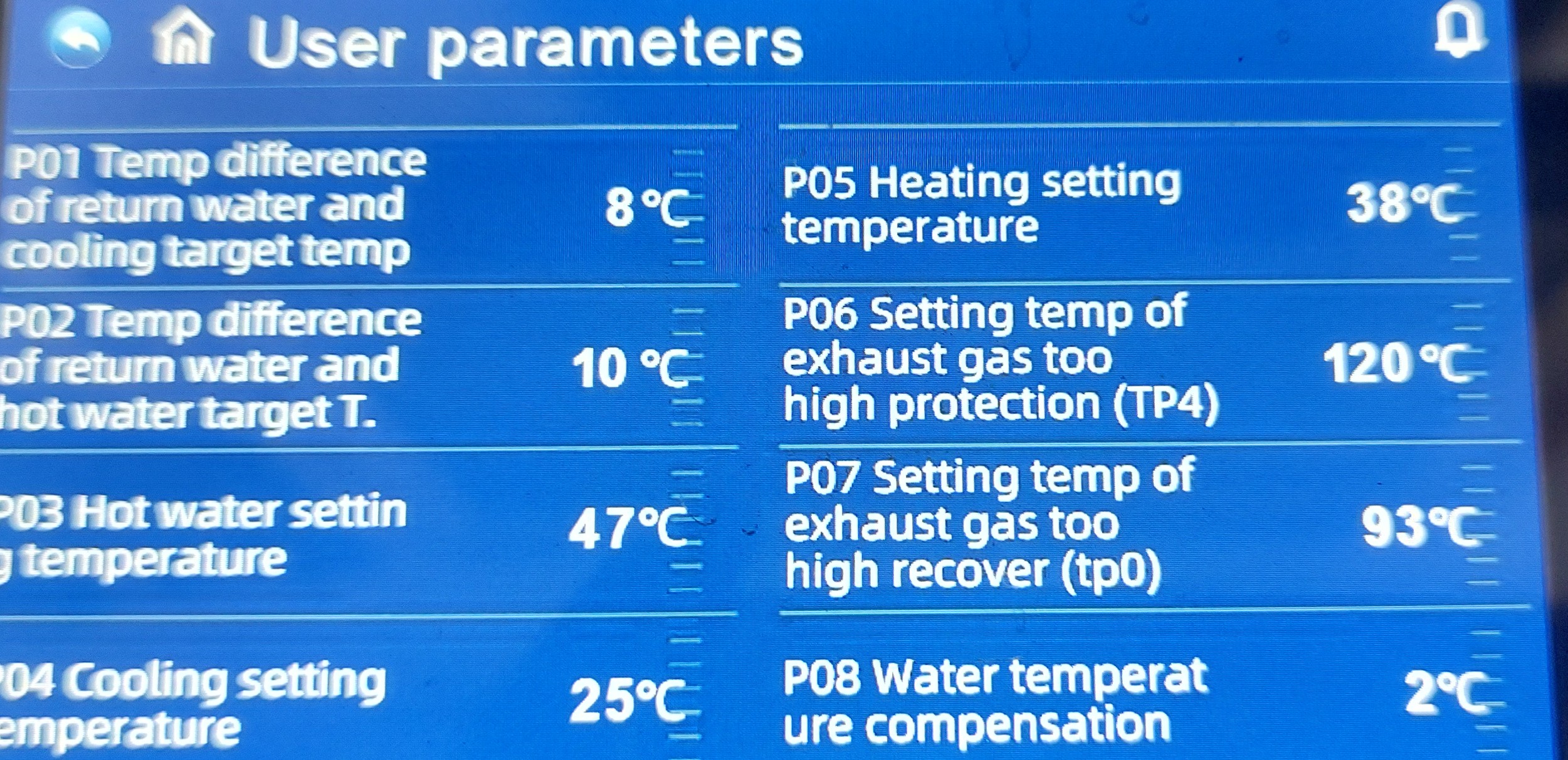 P08 - това е корекция на зададената температура според външната според мен. Един вид да качва зададената температура автоматично като външната почне да пада. И не - не го търся този параметър.