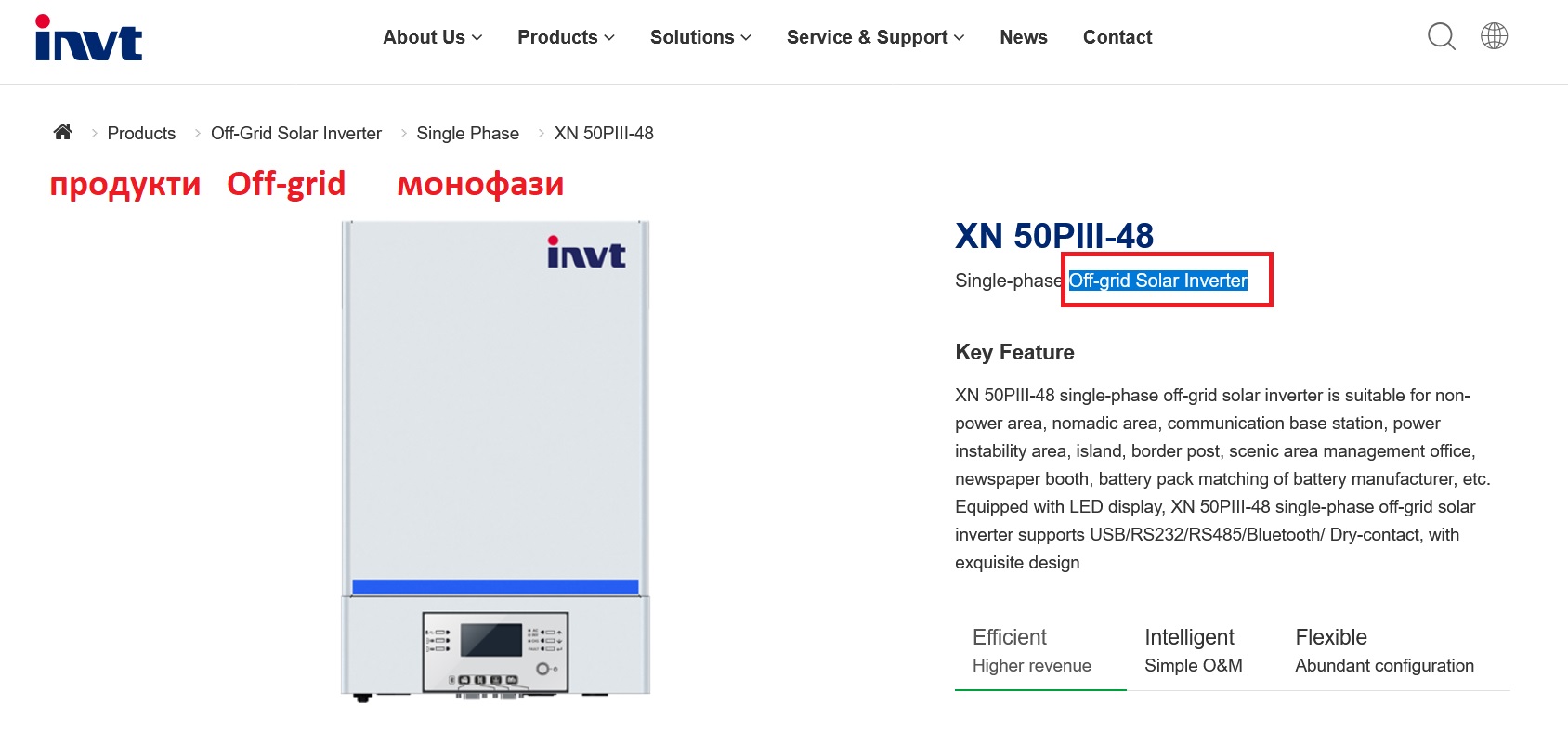 И тук пише, че е "XN50PIII-48 – Single Phase On-Grid – Hybrid – Off Grid"