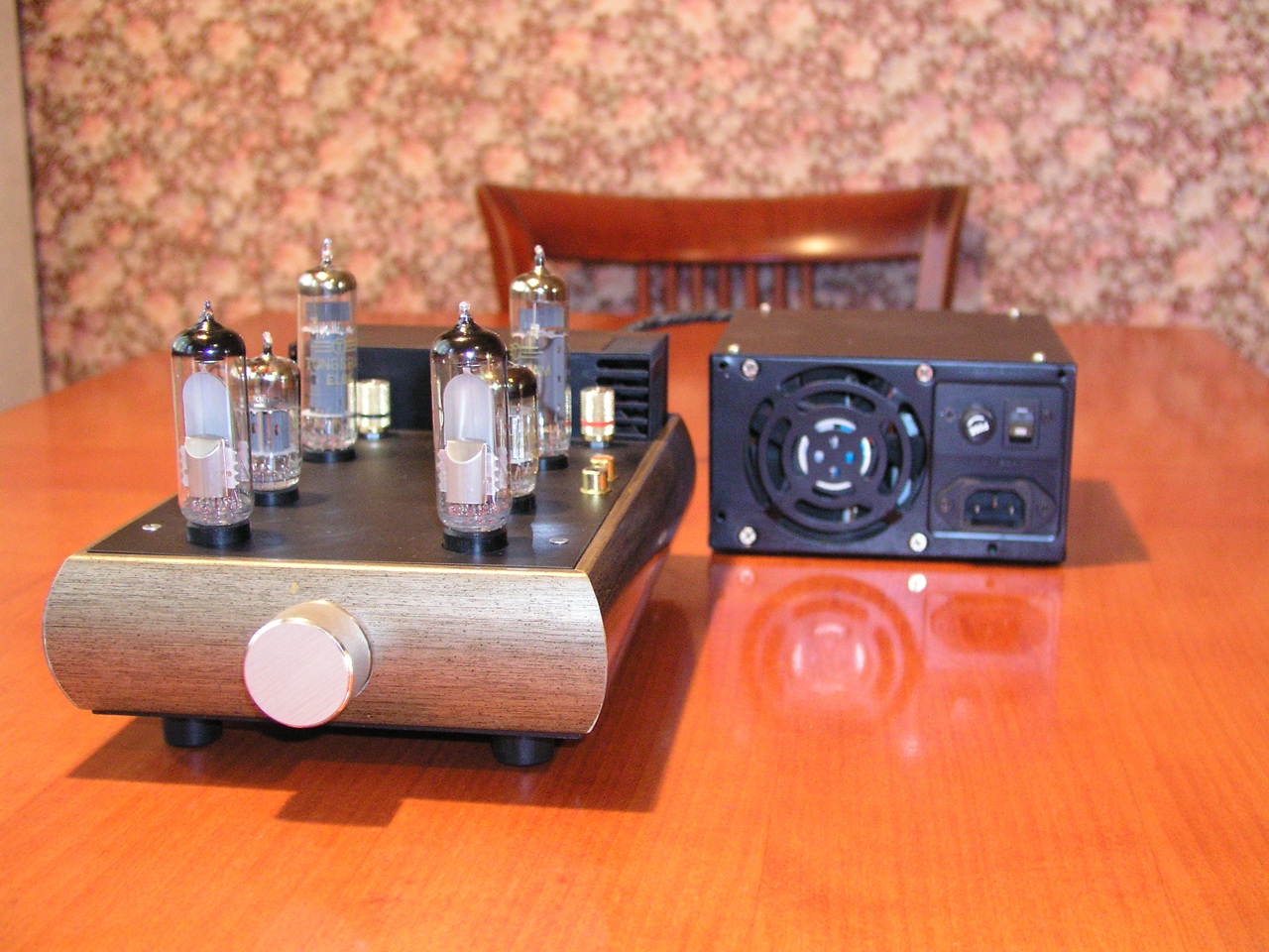 Да,усилвател е с по 3 лампи на канал-ЕМ80-индикаторна,ECC83 и EL84.