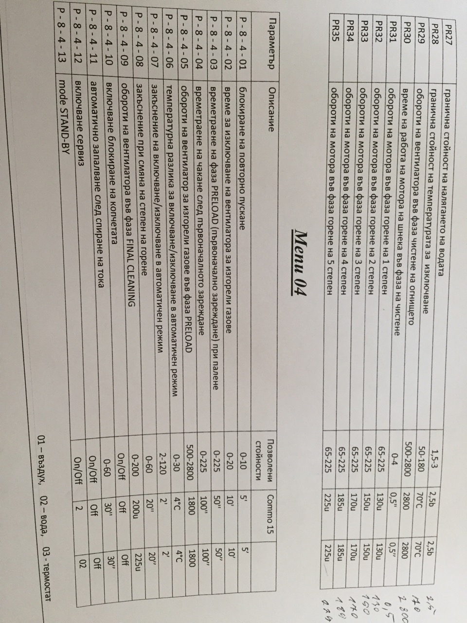 Освен цялостното коригиране на времето на работа на шнека в някакви "+" "-" стойности (предполагам проценти спрямо стандартно заложените), виждам че мога да променям времето в и за всяка степен по отделно - там не смея за барам, за да не започне в определени степени да се задушава или да няма пелети за горене, а и не знам какво точно настройват менютата "n-8-6-04 Auger Light” и "n-8-6-05 Coclea Start”, за останалите "Coclea Pover" от 1 до 5 предполагам, че е времето за работа на шнека в секунди, но през какъв интервал включва не знам (засичам го на около 4 сек.)