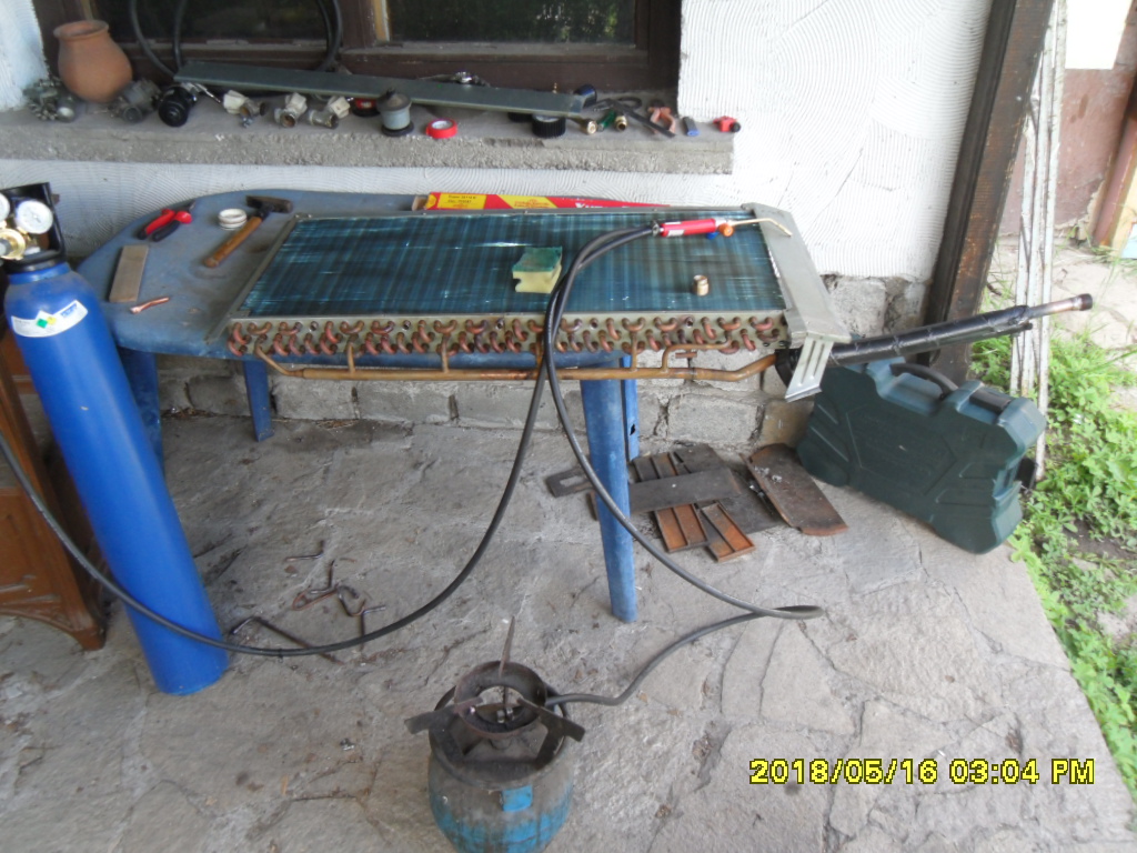 Понеже препрявям вътрешната колона от Осаката за воден конвектор се наложи за преправя кондензатора. Изрезах всички стеснения и монтирах изводи 3/4