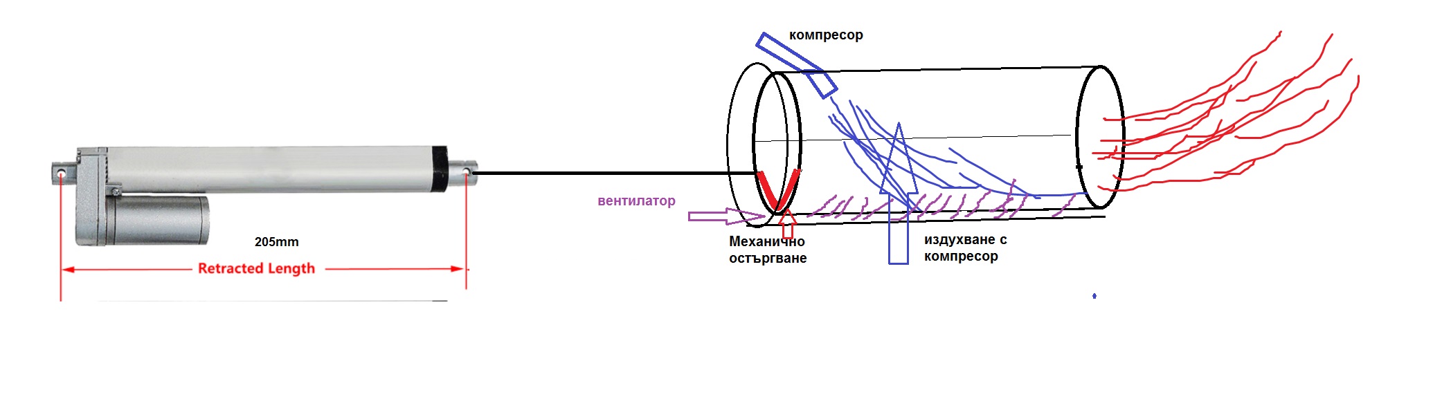 Миналата Година взех от прехвалените румънски пелети който правеха много твърда шлака. Ядасах се и взех точно такъв актуатор от китаиците . Така добавих и механично почистване към моята горелка. Лесно и ефективно. Единствено си поиграх да съчиня малка схемичка която до обръща поляритета в края на хода за да прибере актуатора в изходно положение..