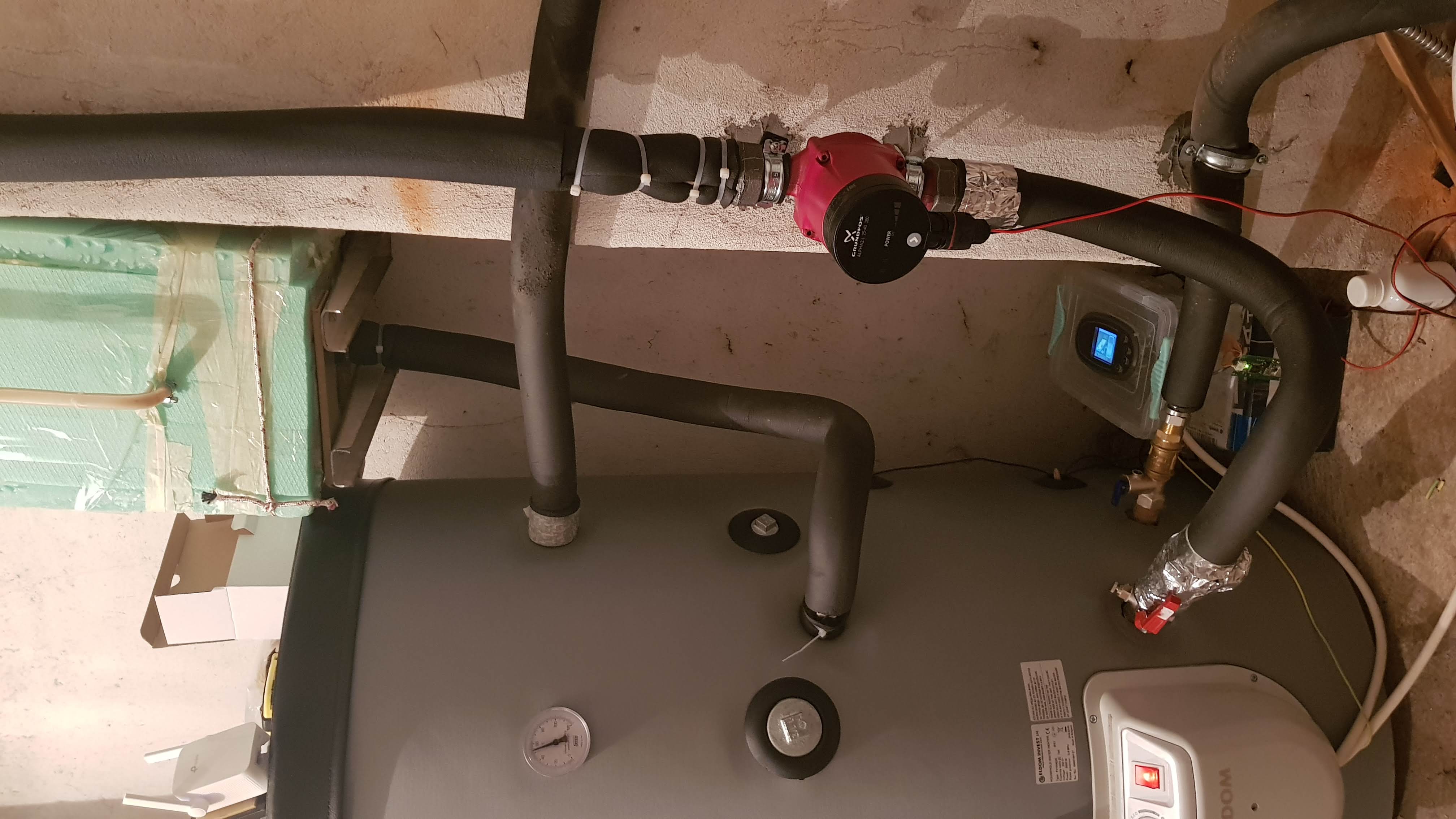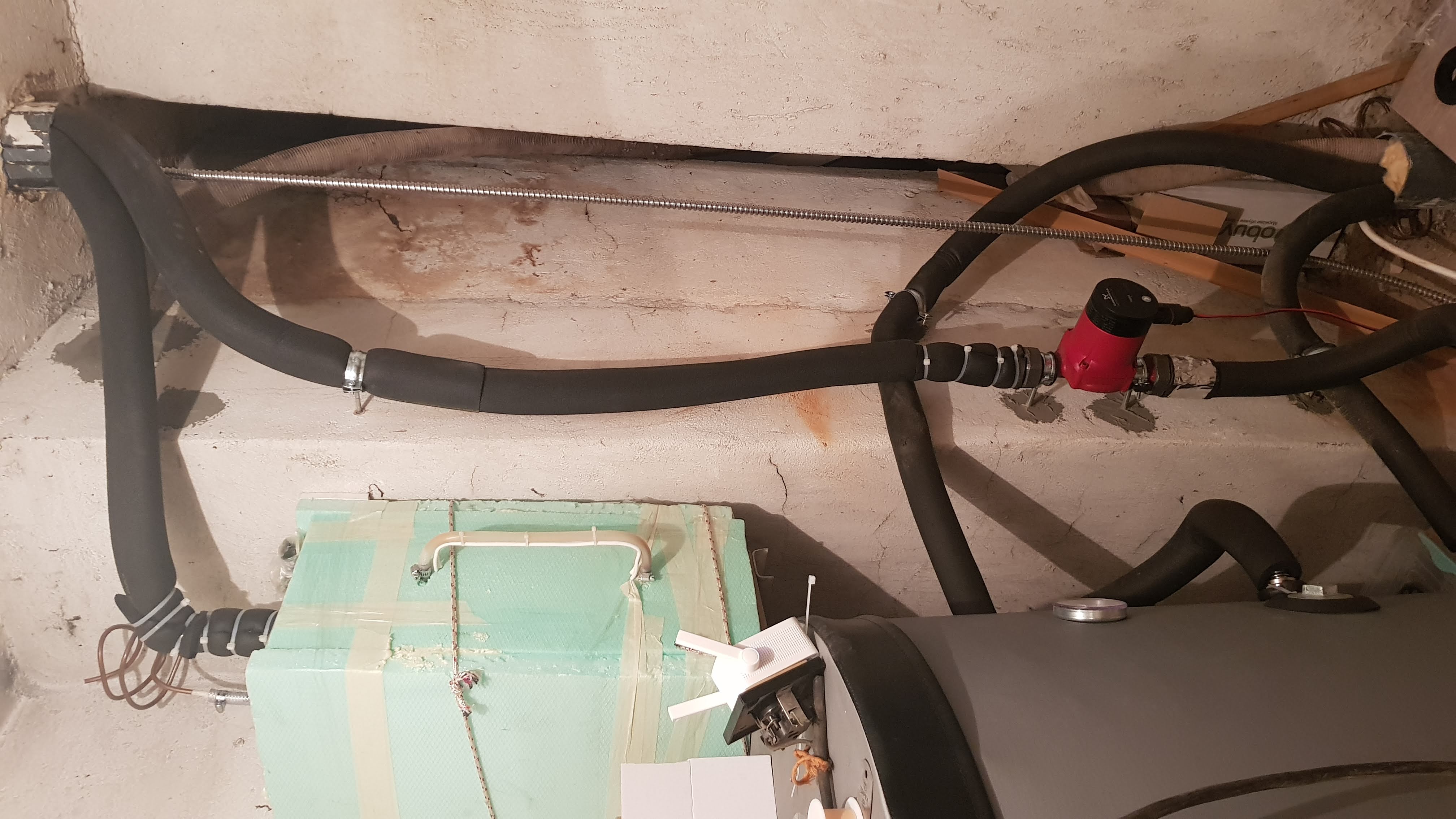 Изглежда добре.можело е помпата да е още по-ниско а на ДС входа от колектора да е монтиран странично горе и така да се вдигне с 15/20 сантиметра по високо. Коремчето на гофрата след помпата малко е излишно но не е грешка.Пробвай различните варианти и сподели.Аз например като пуснах една такава система с вода ,помпата превърташе на 1 вас скорост.Когато я напълних с антифриз започна да се чуди.Един път превърта ,д